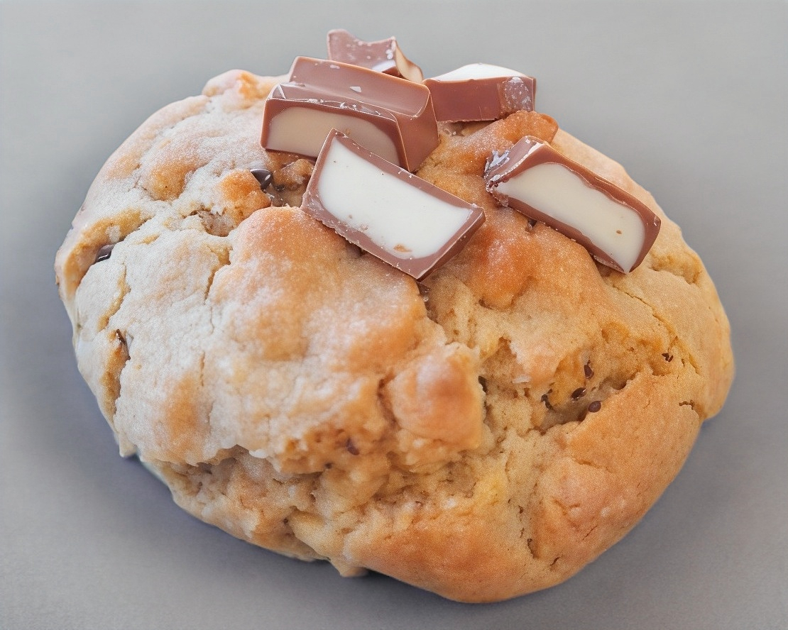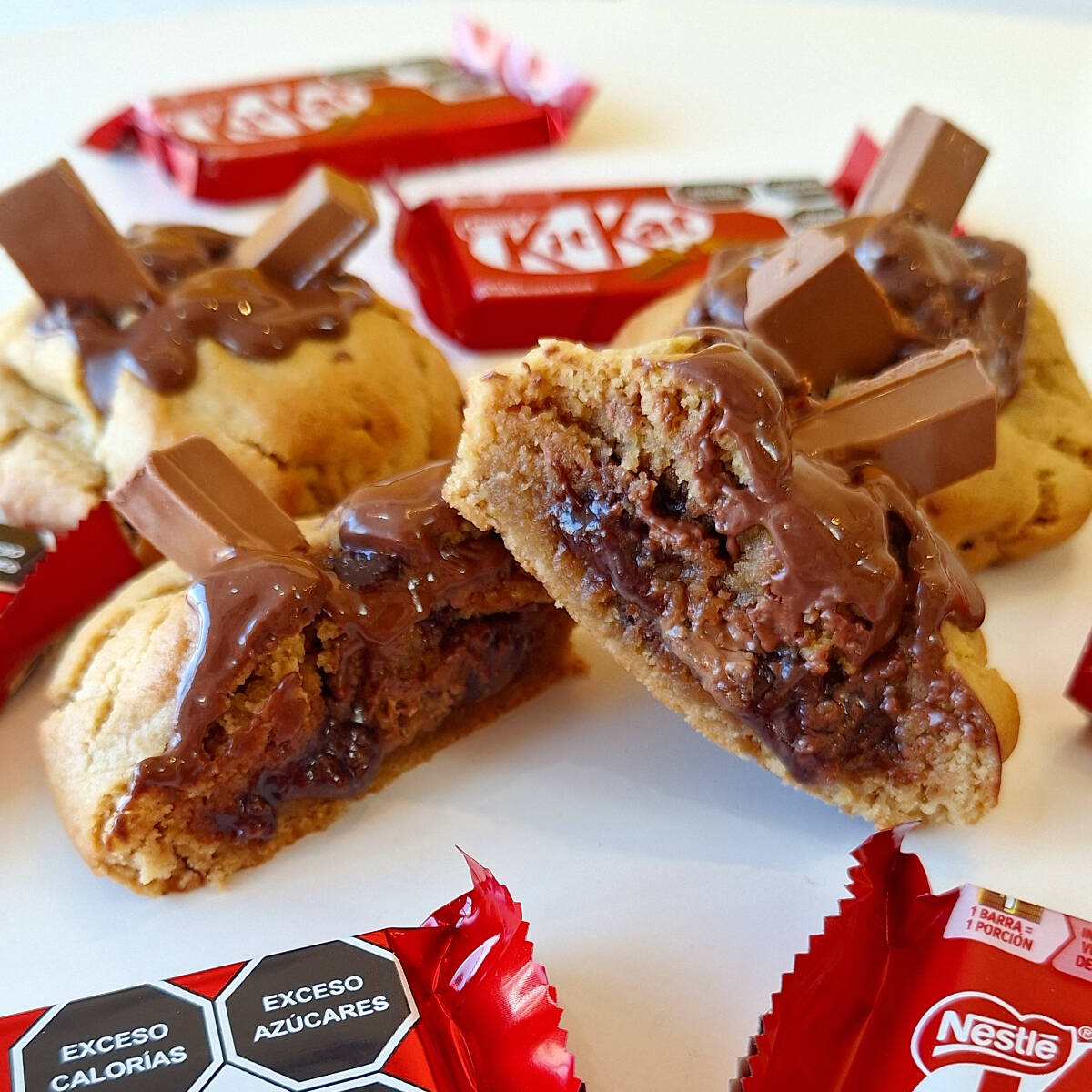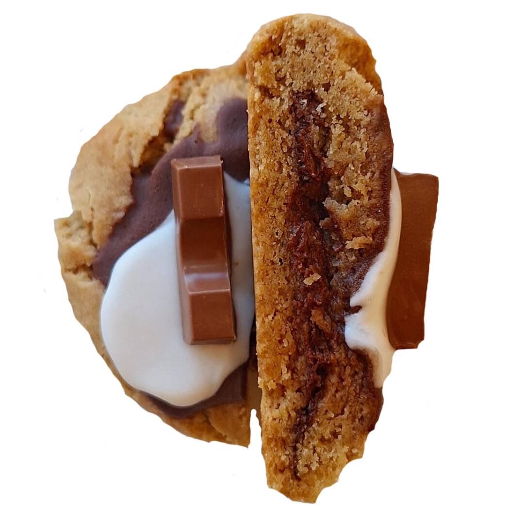 Galleta de vainilla rellena de nutella y coronada con chocolate kinder.