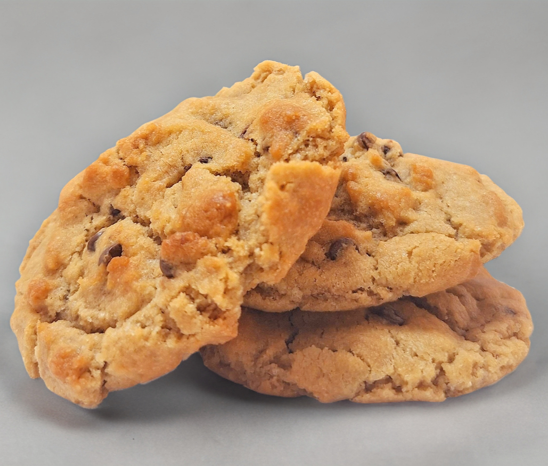 Clásica galleta de vainilla rellena con trozos y chispas de chocolate.