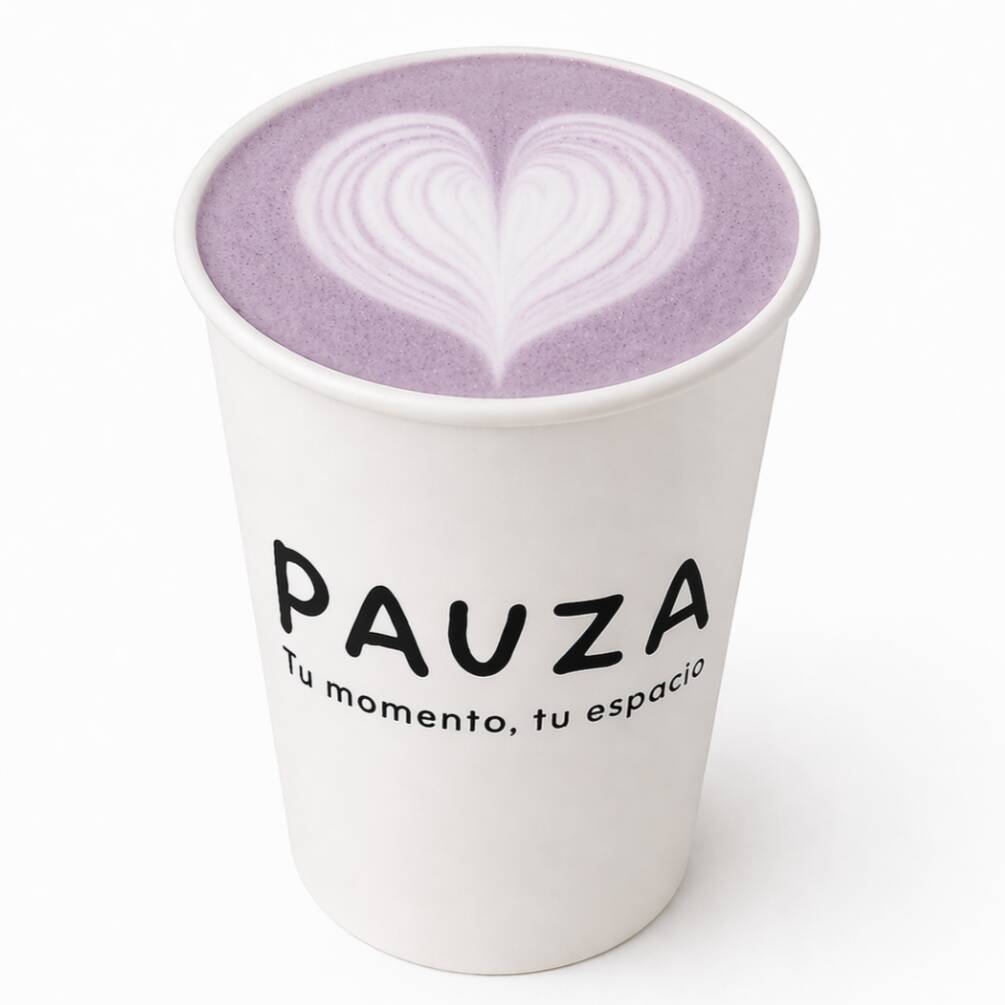 16 Oz. Taro con UBE en su versión latte caliente.