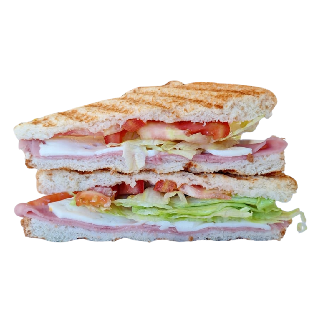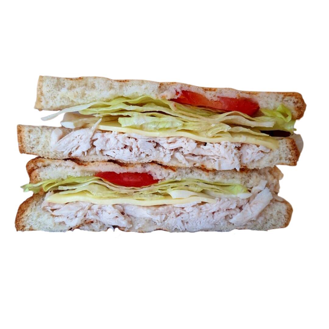Generosas rebanadas de jamón de pavo, una capa de queso, fresca lechuga y jugosas rebanadas de tomate.