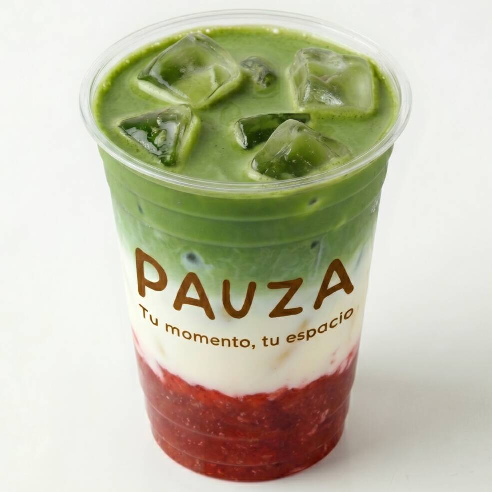 Dulce pulpa de fresa, suave leche cremosa y la energía vibrante del Matcha