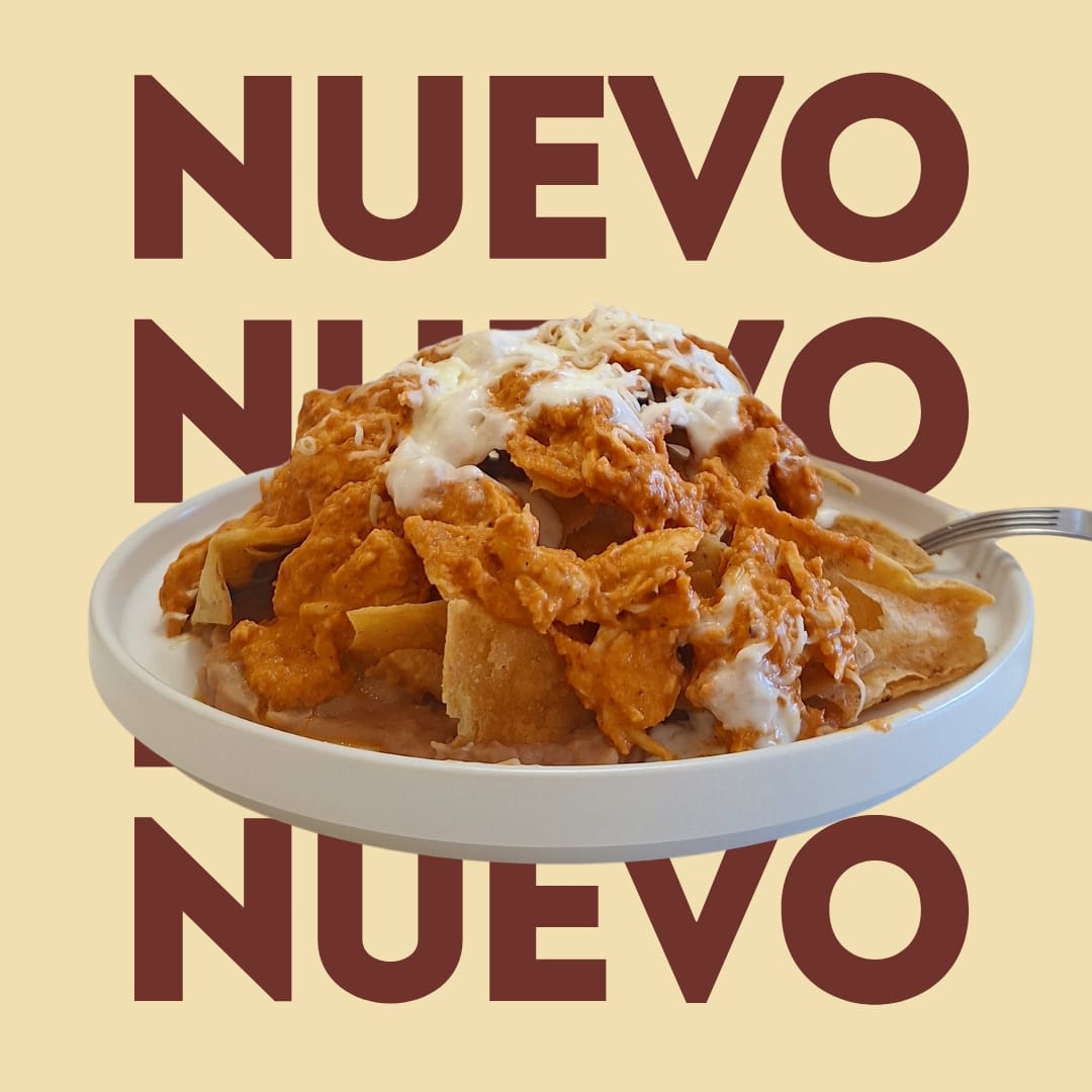 Orden completa de chilaquiles, totopos bañados en tu salsa favorita a escoger con queso y crema acompañados de frijoles refritos.