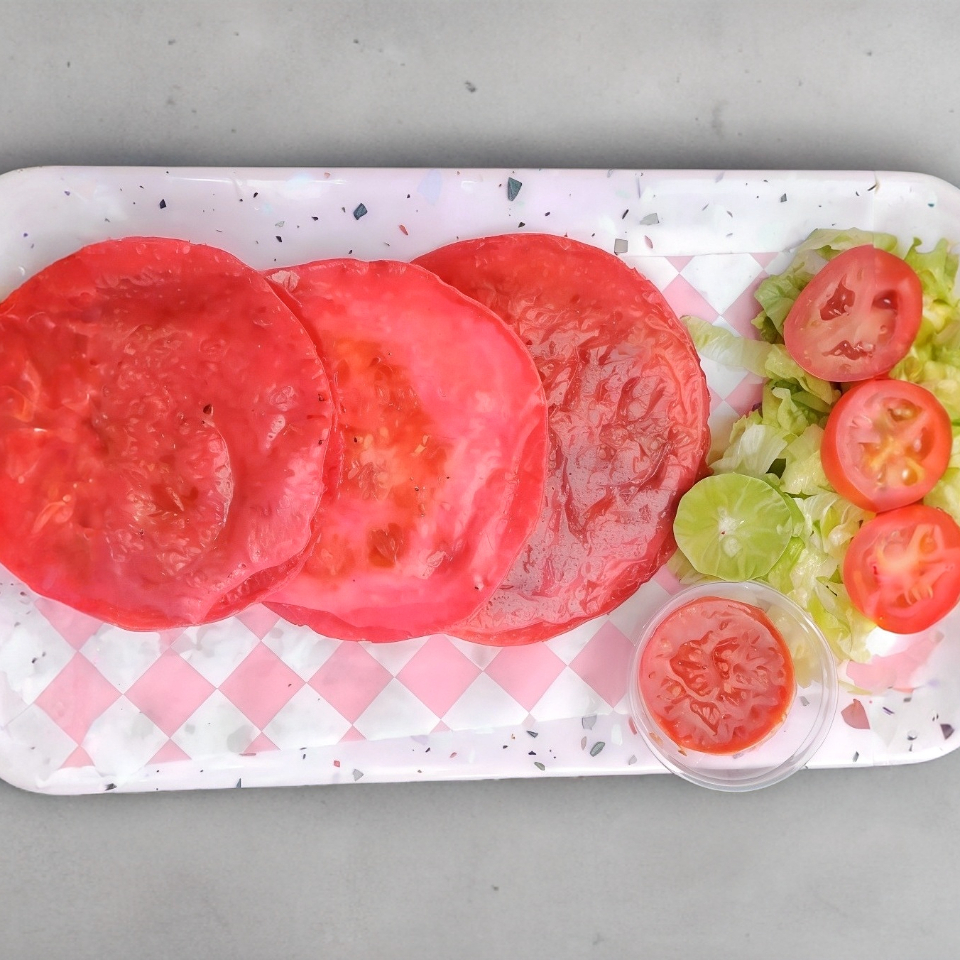 3 Gorditas de maíz fritas servidas con lechuga, tomate y salsa de árbol, color rosita cerdito.