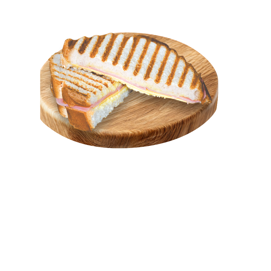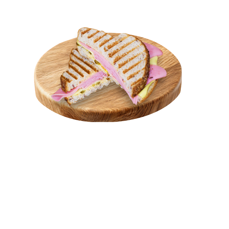 Delicioso sándwich a la plancha con una mezcla de queso gouda, manchego y amarillo. Incluye generosa porción de jamón americano, Aderezo Ranch y chile jalapeño