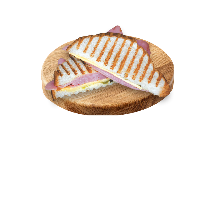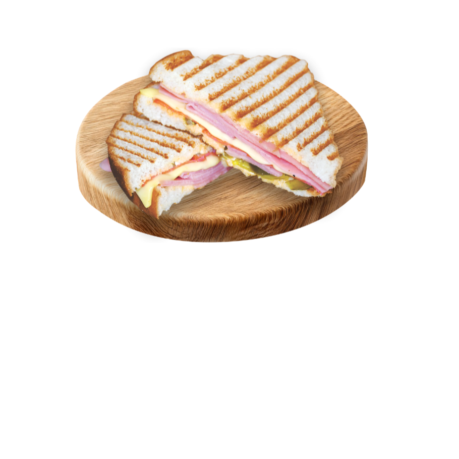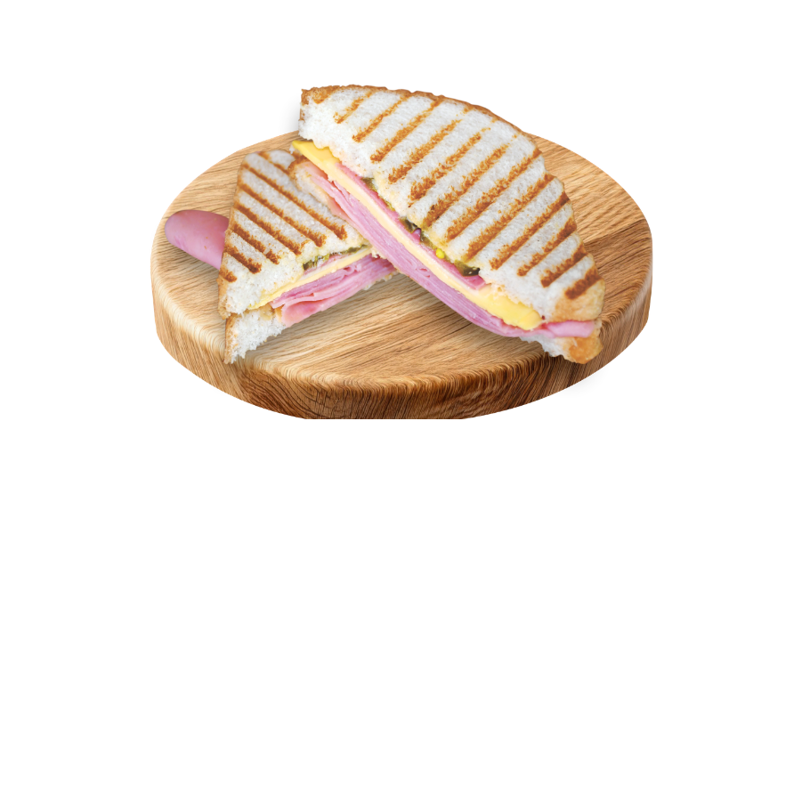 Delicioso sándwich a la plancha con generosa porción de jamón americano, queso manchego y queso amarillo. Incluye aderezo clásico y chile jalapeño.