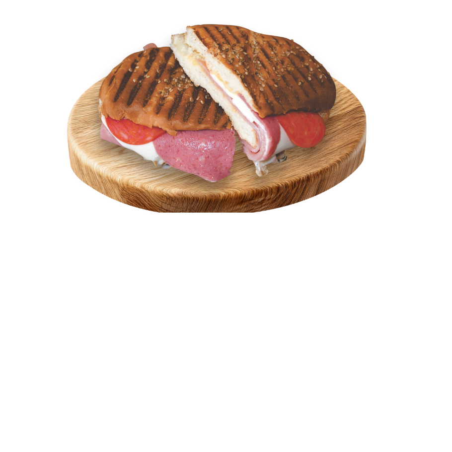 Delicioso sándwich a la plancha con generosa porción de jamón americano y pepperoni. Con queso gouda, aderezo italiano y chile jalapeño