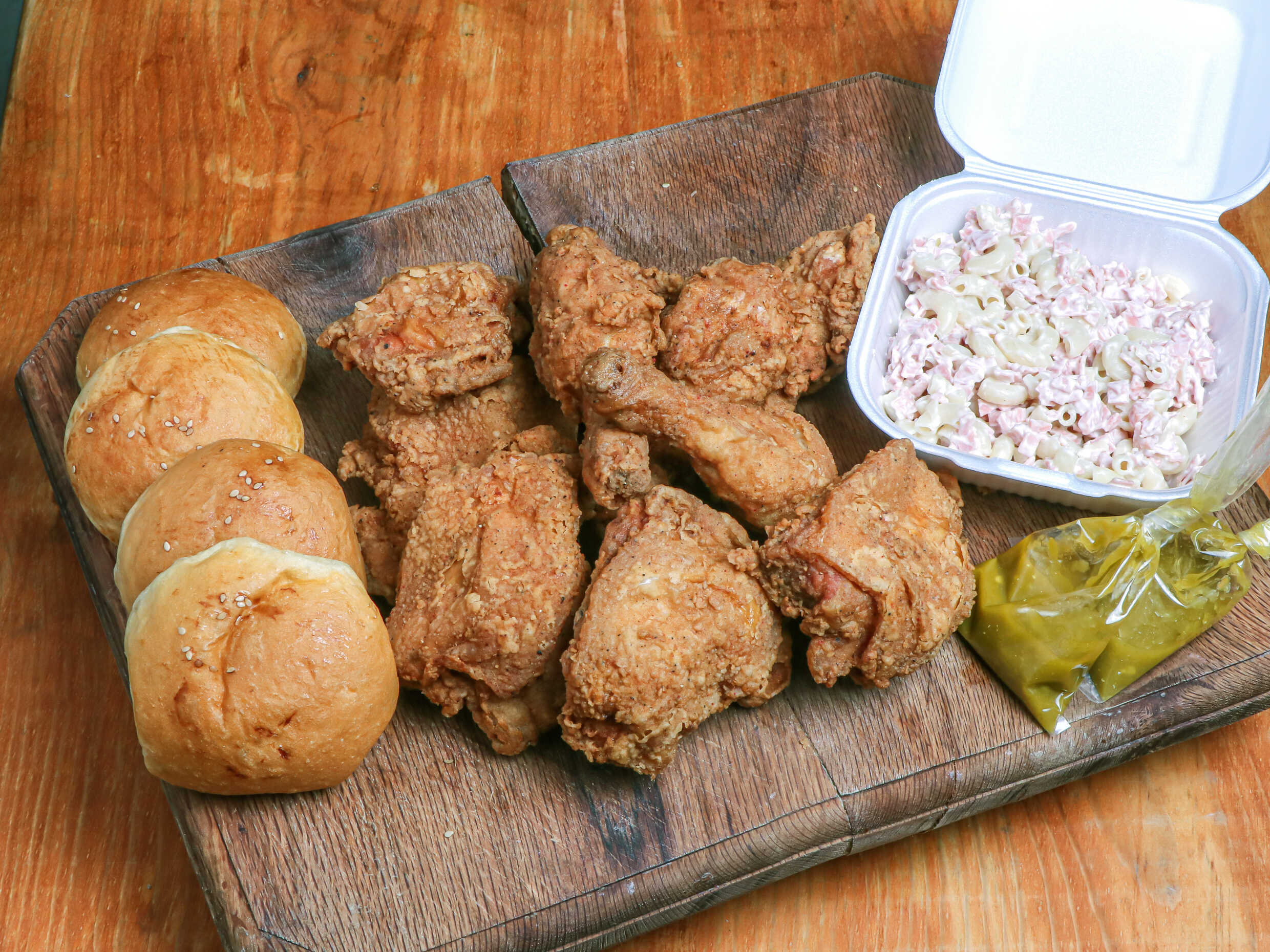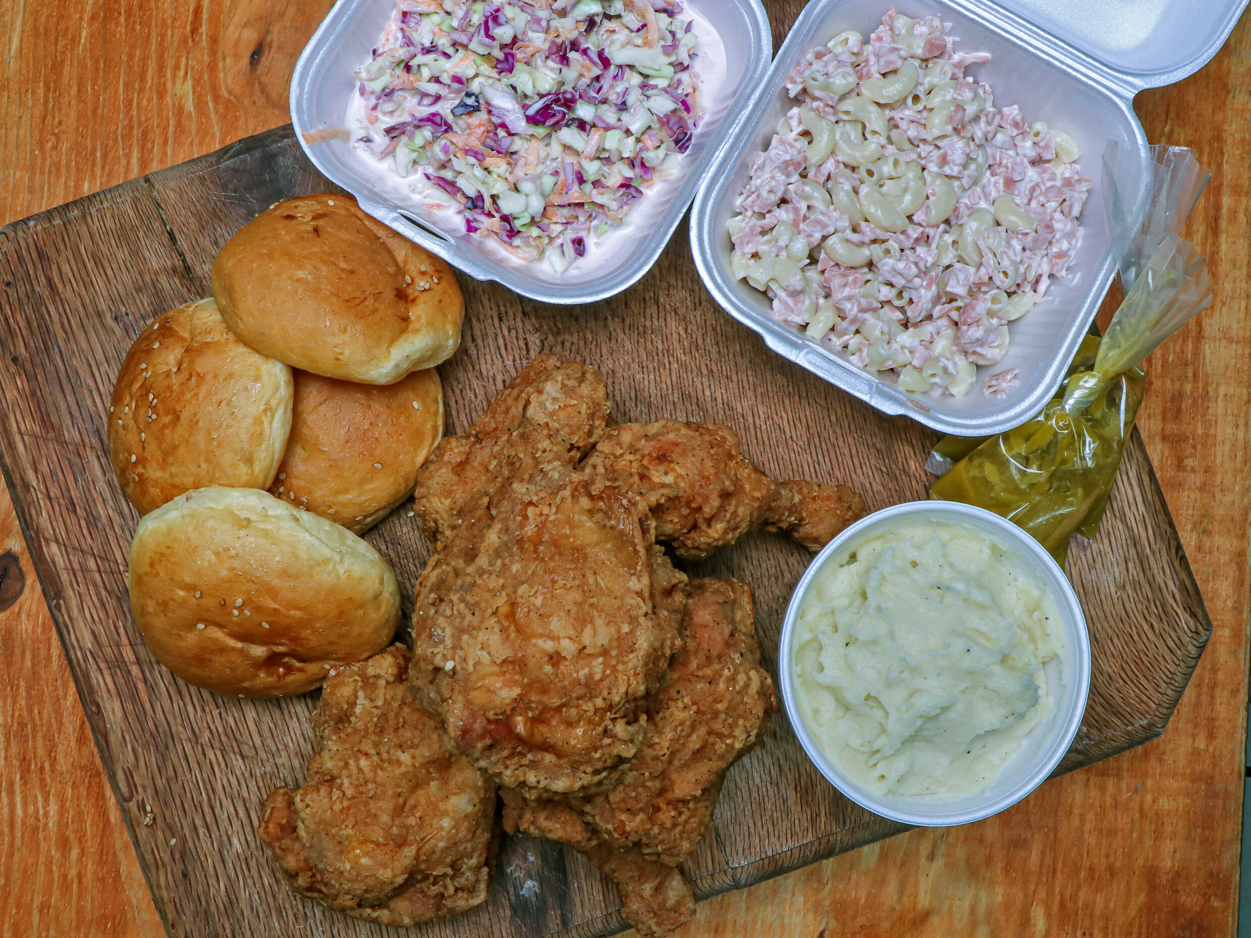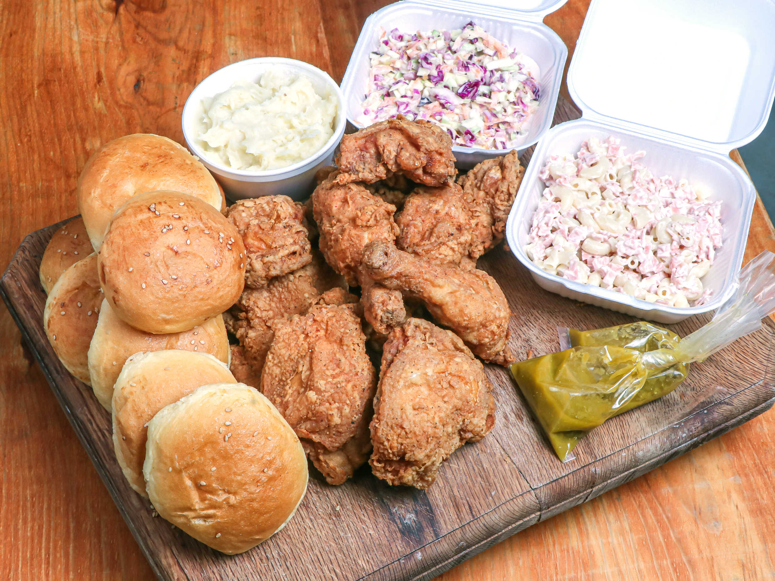 1 kg de pollo, 1 sopa 250grs, 1 ensalada 250grs 1 pure de papa, 1 refresco 1.5, 8 pzas de pan,