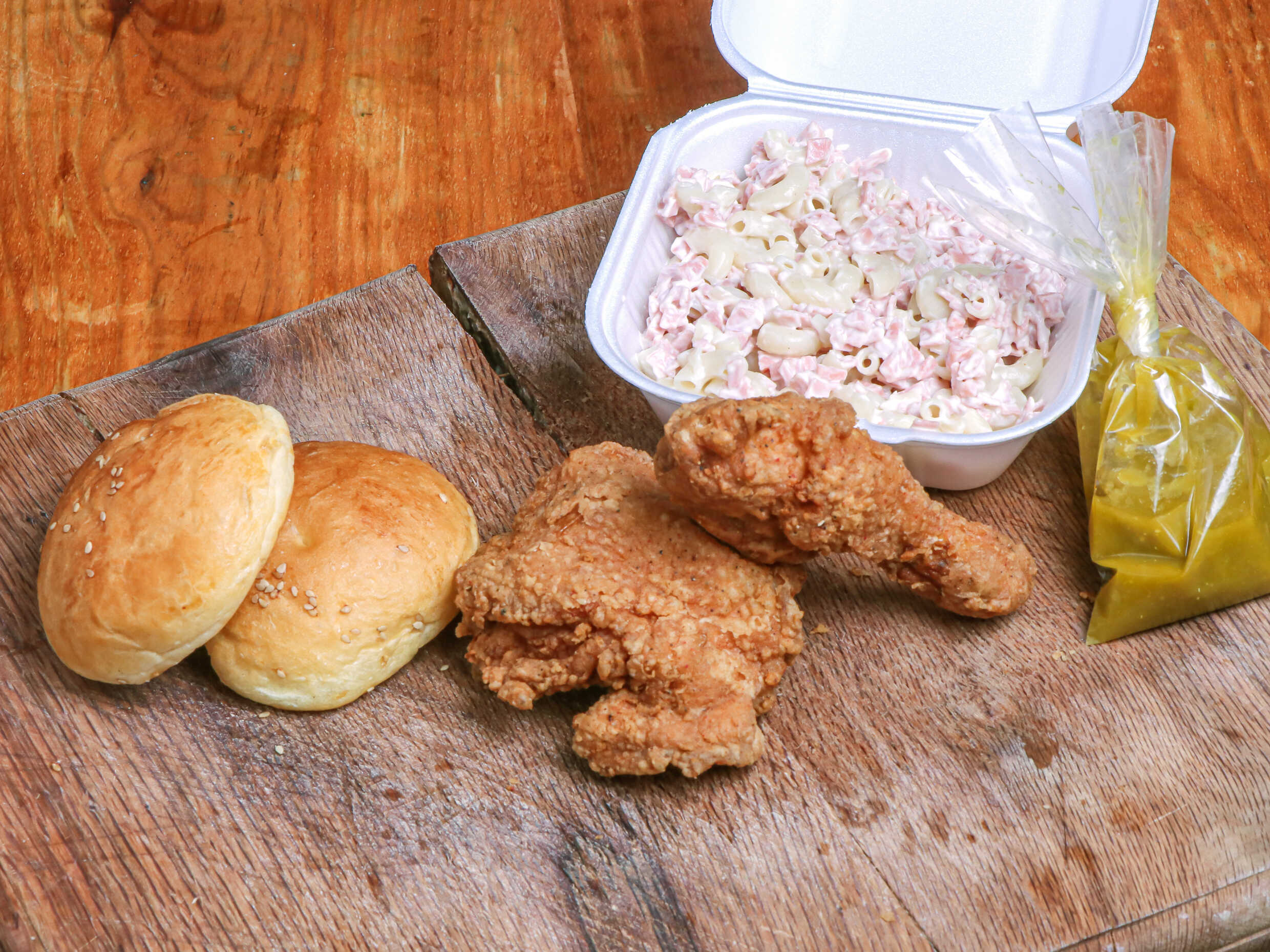 2 pzas de Pollo, 1 sopa 125grs, 1 refresco 600ml, 2 pzas de pan