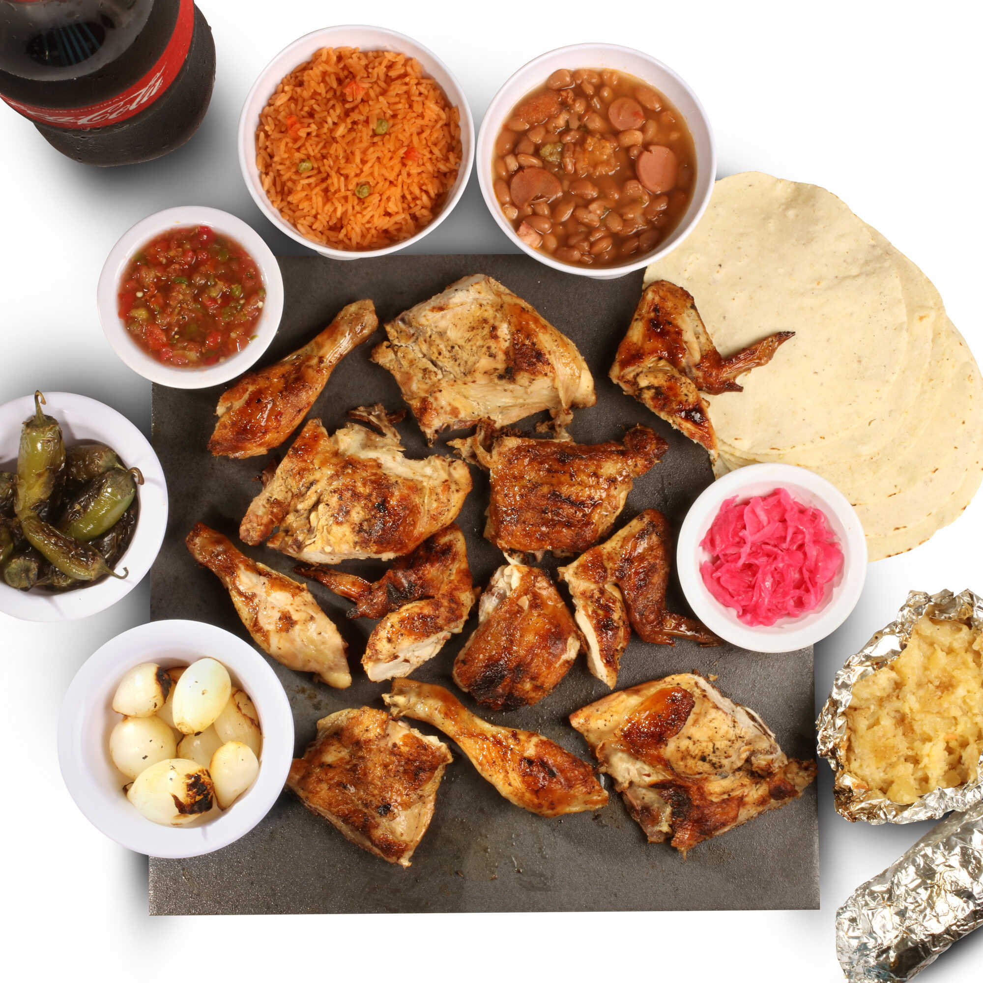 1 Pollo grande, (incluye 8 tortillas y 2 salsas).