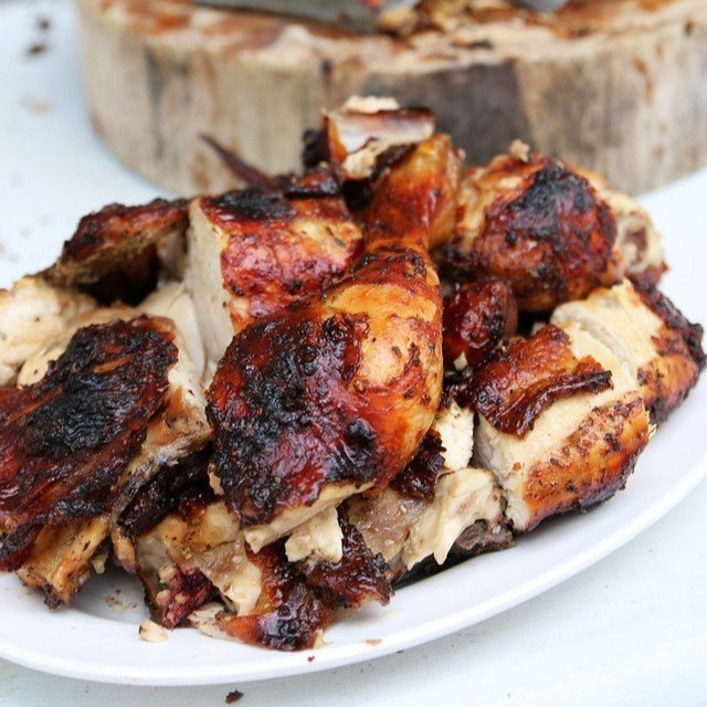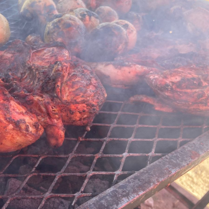 Un pollo entero al carbón, Incluye salsa, tortillas, cebolla y chile asado