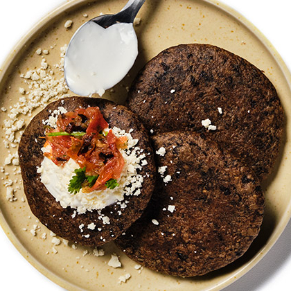 3 GORDITAS NEGRITAS CON ASIENTOS DE CHICHARRON Y GUISOS