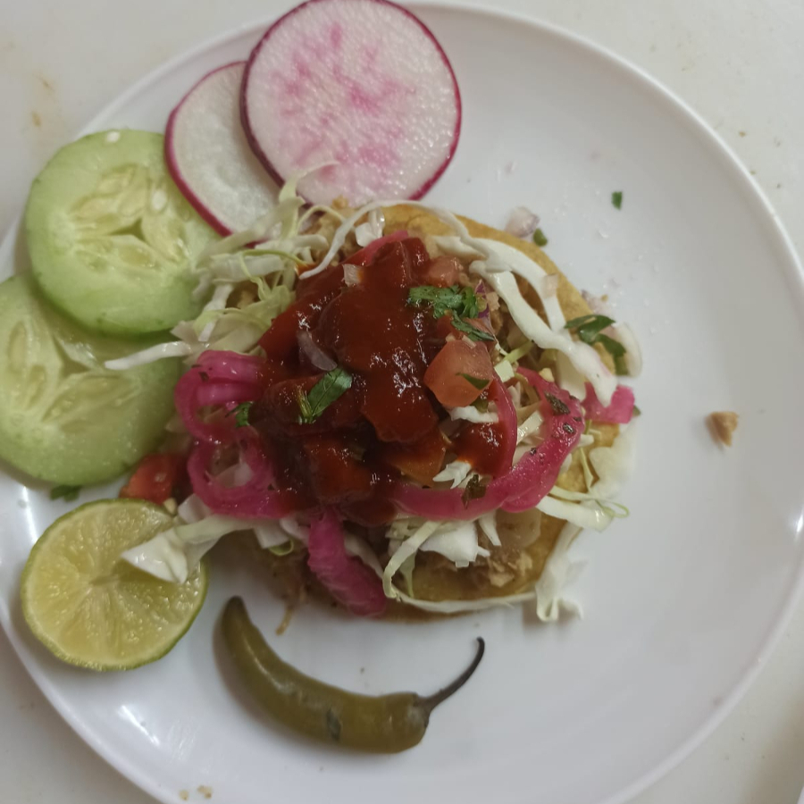 Pan pita, 130gr de carne de asada al trompo, ensalada fresca de cebolla y nuestra salsa de ajo de la casa.