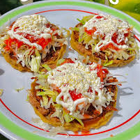 3 DELICIOSOS SOPES ACOMPAÑADOS DE COL, QUESO FRESCO Y CREMA
