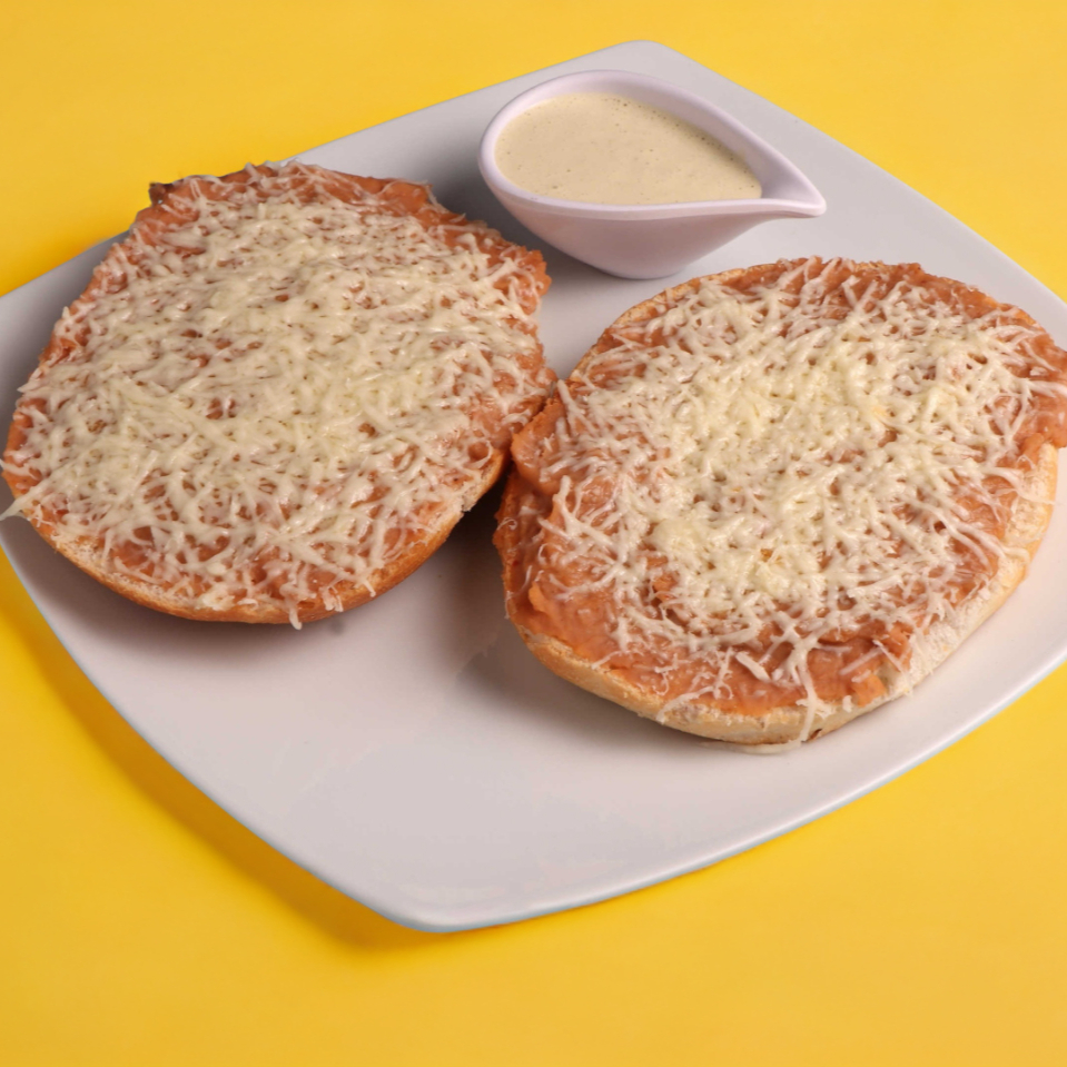 Telera con frijoles refritos y queso gratinado