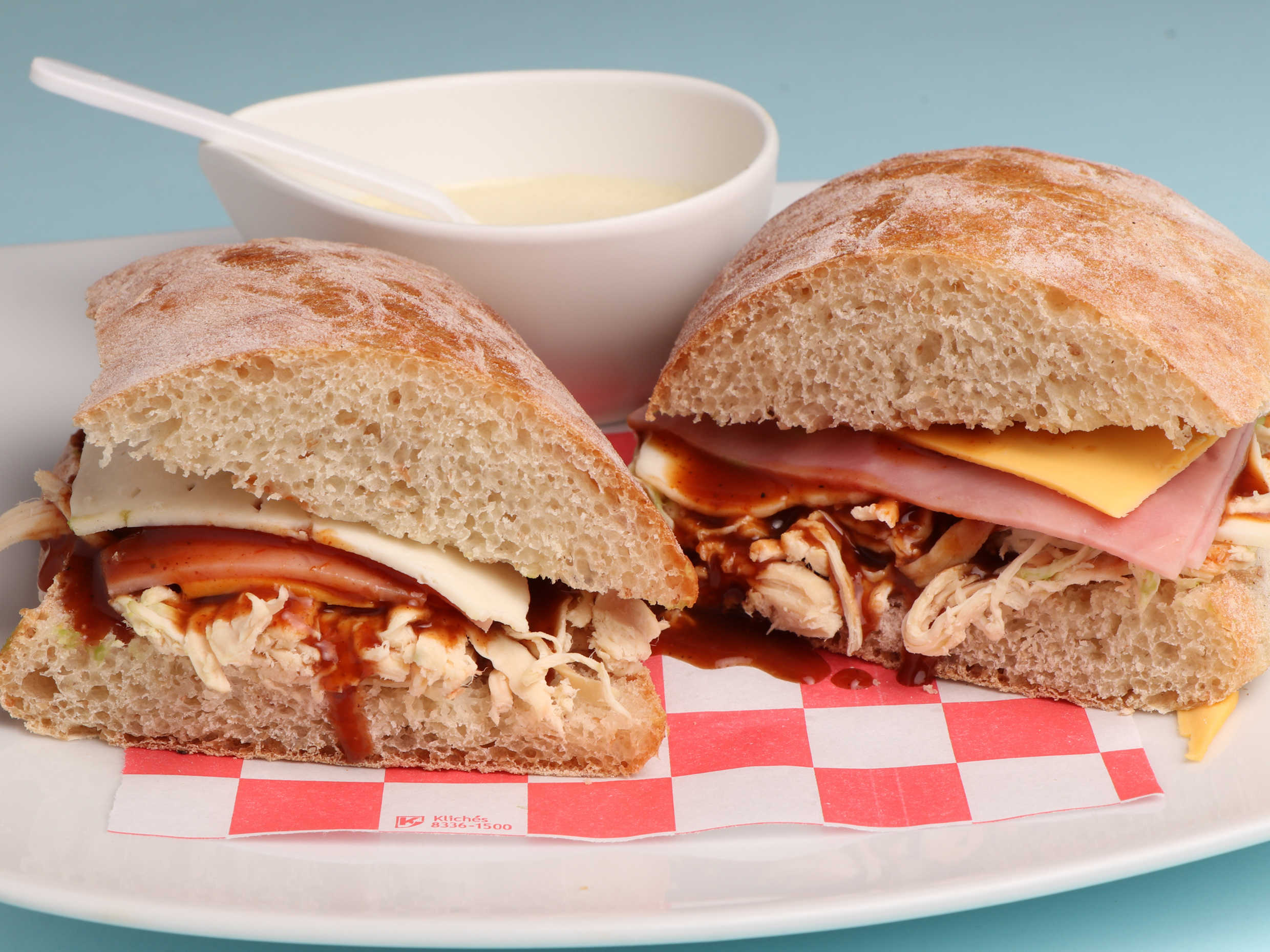 Pollo chipotle o BBQ, jamón y quesos.