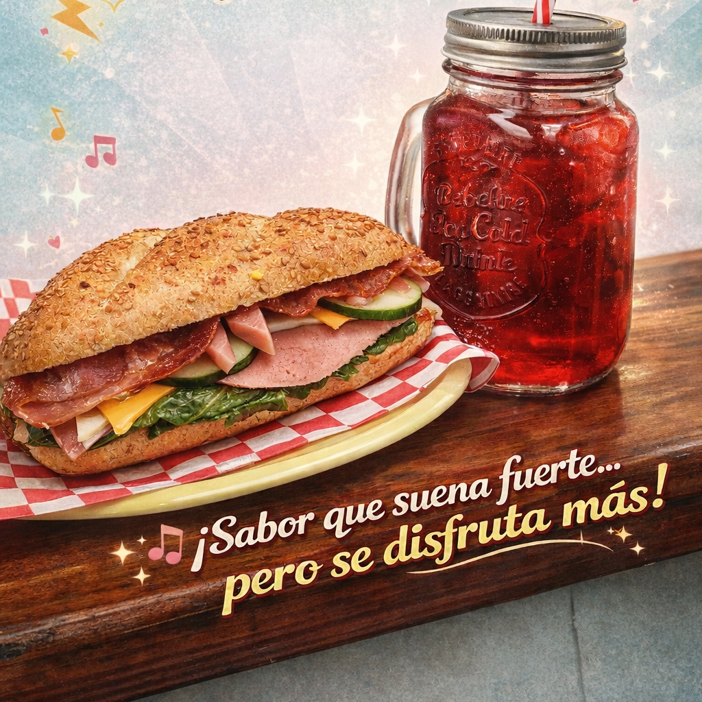 Pollo asado, jamón, quesos, lechuga, jitomate, jalapeño aderezo chipotle.