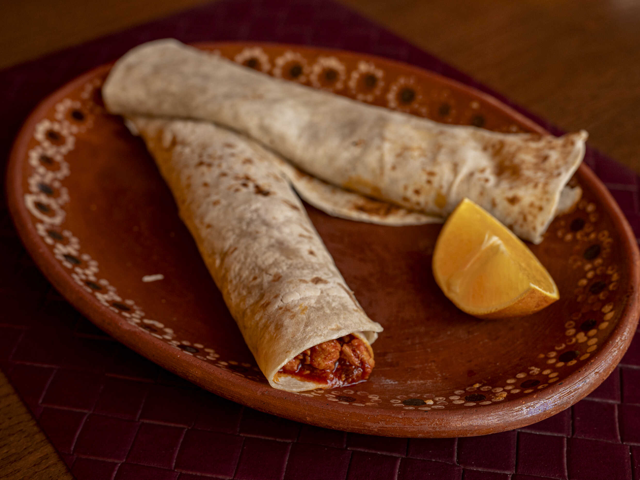 Ricos burritos de, deshebrada en salsa verde, asado rojo, rajas con queso, frijoles con queso, picadillo verde, picadillo rojo, discada, chicharrón prensado, chicharrón de yesca.