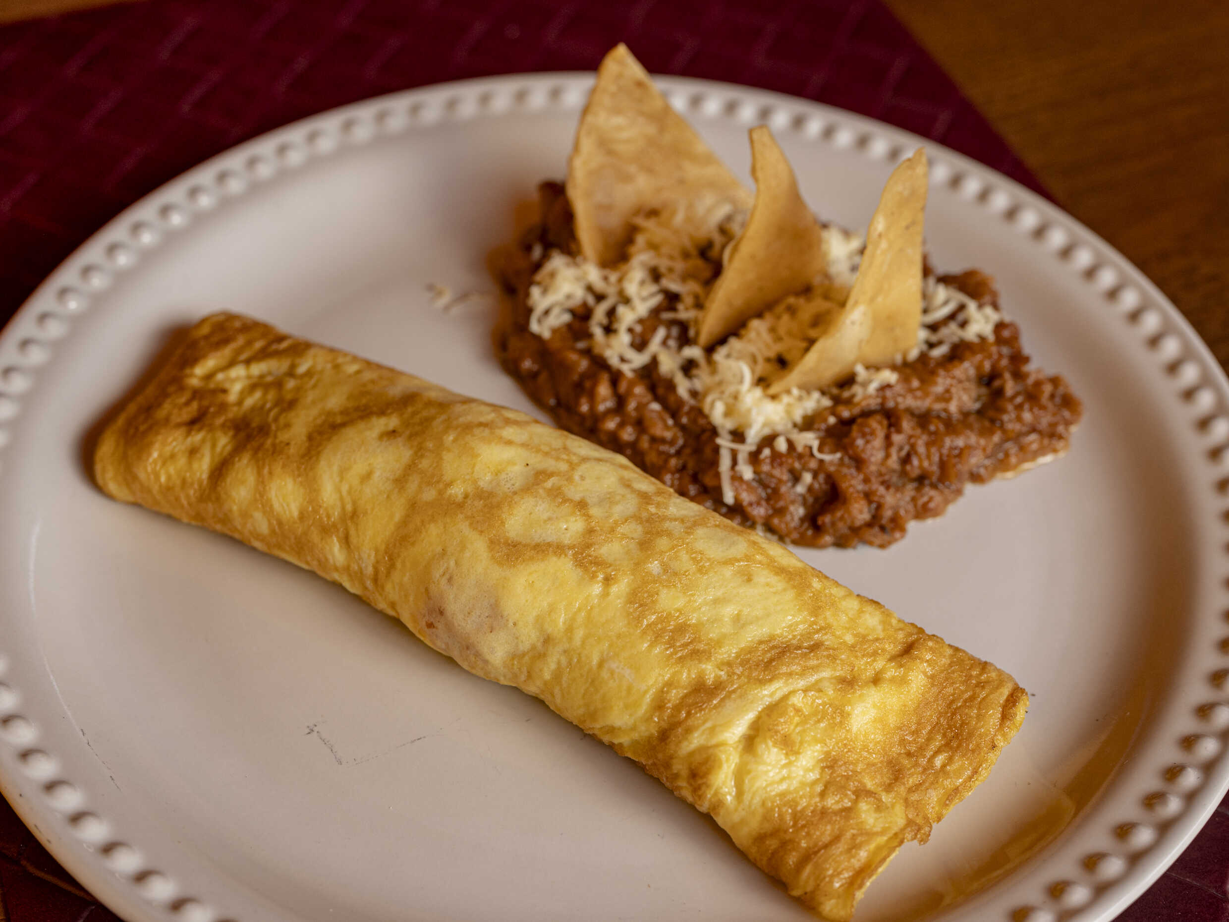 2 huevos, revueltos con jamón, chorizo, tocino o a la mexicana; acompañados de chilaquiles verdes o rojos y frijoles refritos.