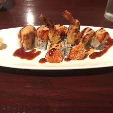 200 grs de arroz, por dentro camarón empanizado, aguacate y queso, por fuera salsa de anguila y ajonjoli
