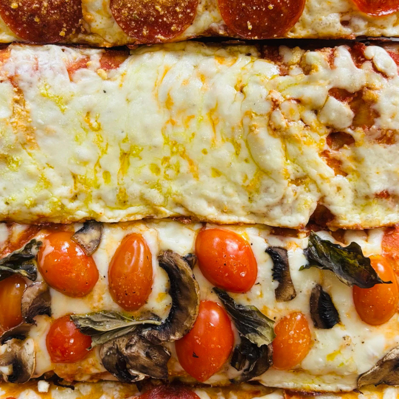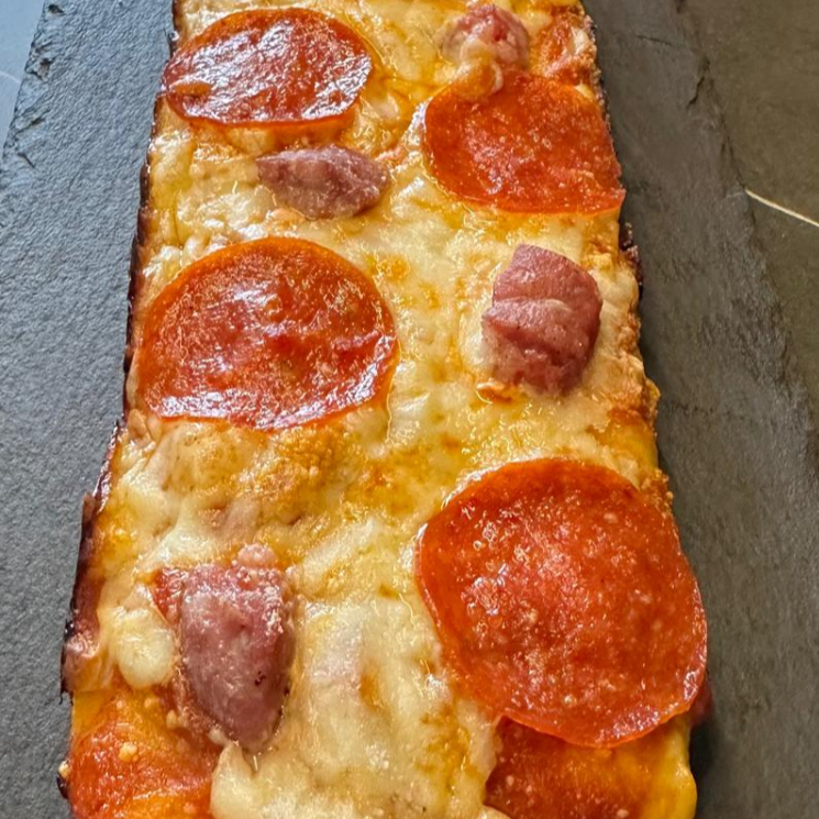 Pizza individual rectangular de 25 cm con salsa fresca de tomate ,queso mozzarela ,parmesano ,peperoni ,salchicha italiana