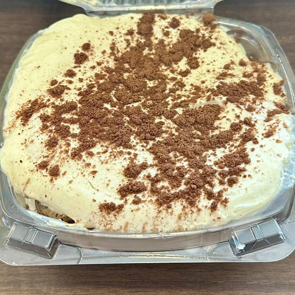 Postre italiano con crema de queso mascarpone con galleta italiana café y cocoa.