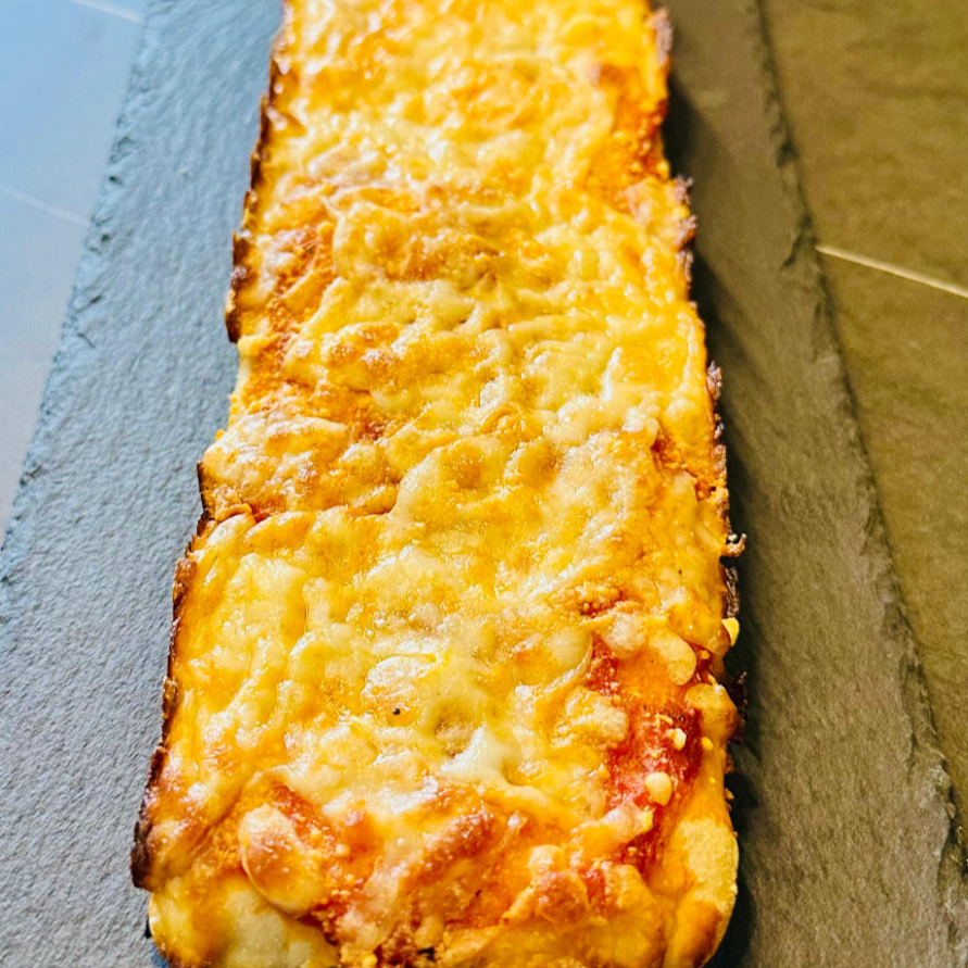 pizza individual rectangular de 25 cm con salsa de tomate queso mozzarela y parmesano fresco