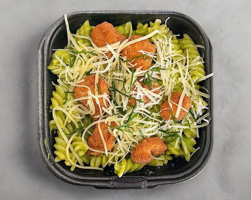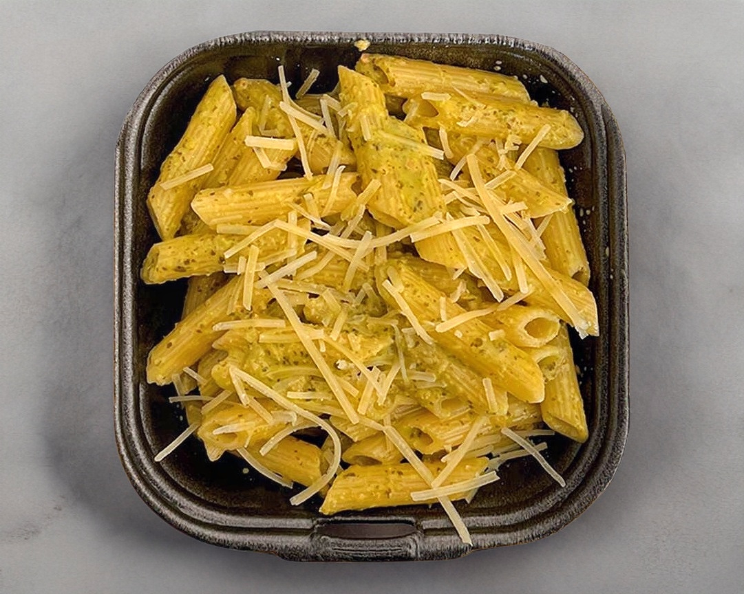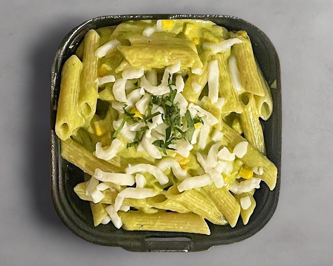Salsa verde a base de chile poblano y crema. Todas nuestras pastas incluyen una porción de queso mozzarella o parmesano.