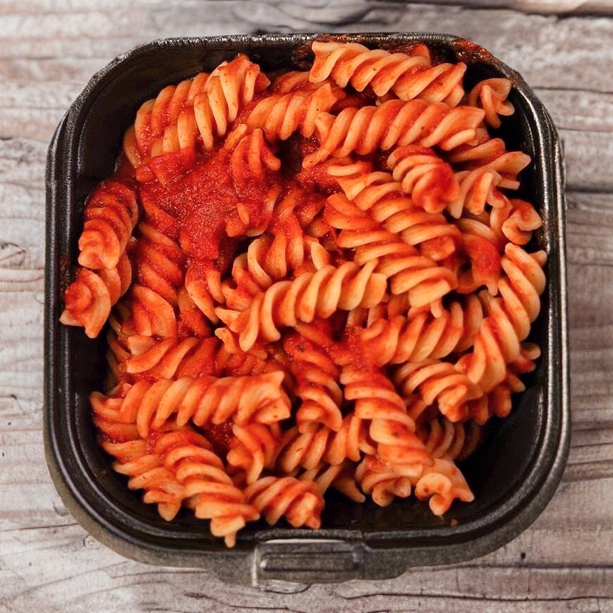 Salsa a base de tomates, hierbas y sofrito de vegetales mixtos. Vegetales mixtos son: jitomate, apio,zanahoria albahaca , tomillo y laurel. Todas nuestras pastas incluyen una porción de queso mozzarella o parmesano.