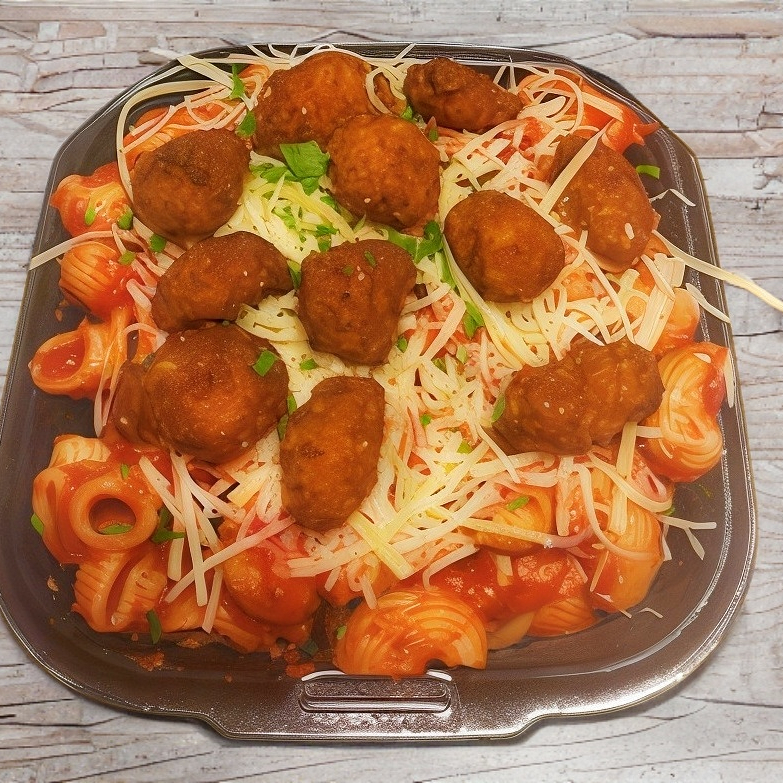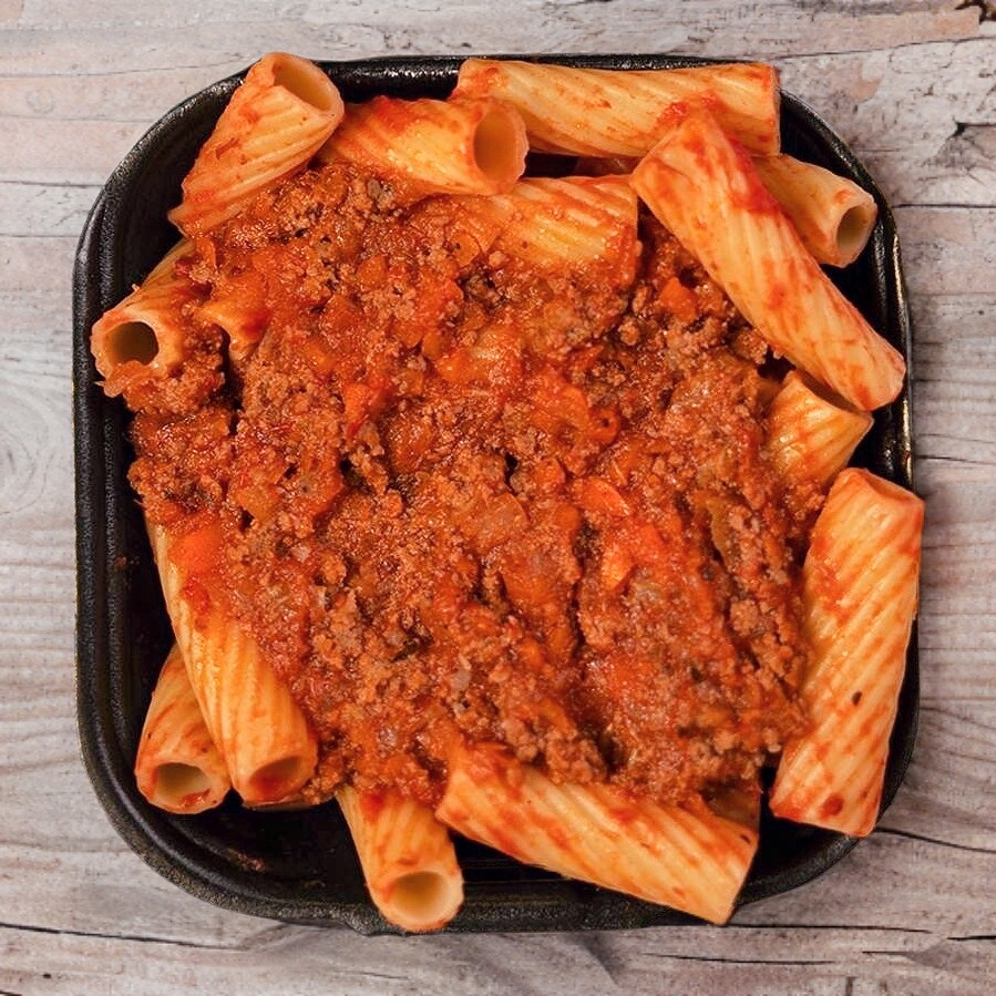Ragú de carne con nuestra salsa pomodoro. Todas nuestras pastas incluyen una porción de queso mozzarella o parmesano.