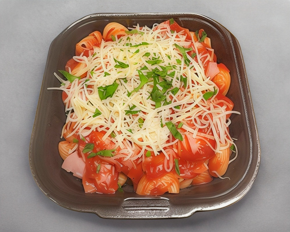Nuestra salsa Pomodoro salteada con Jamón y queso Parmesano encima