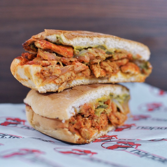 1 torta de chile relleno, 1 torta de pierna adobada, 1 burro de pollo, 1 burro de deshebrada, 2 coca-cola en lata, 1/4 de litro de ensalada de papa.