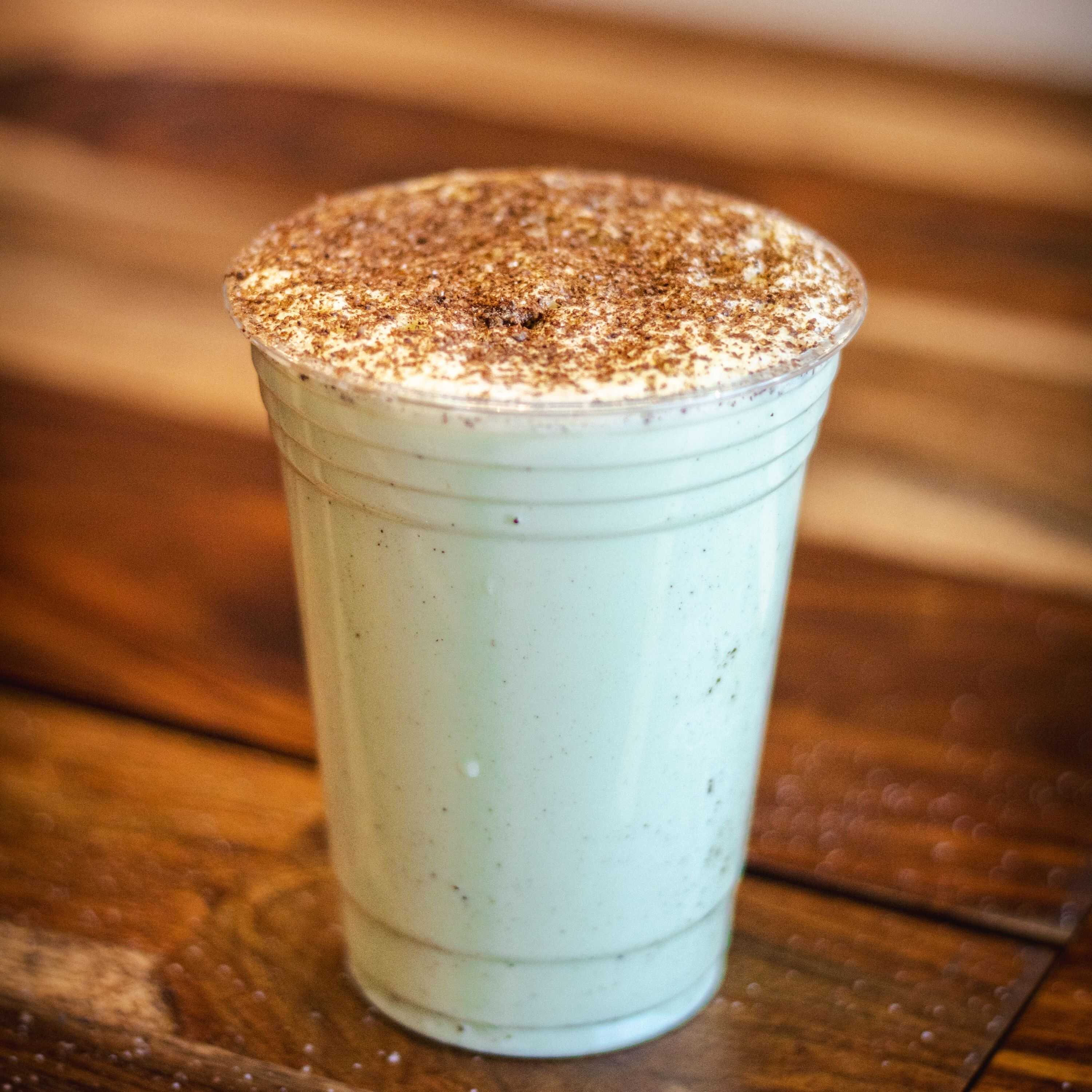 Bebida fría y dulce con leche, de consistencia cremosa, a base de té verde con especias