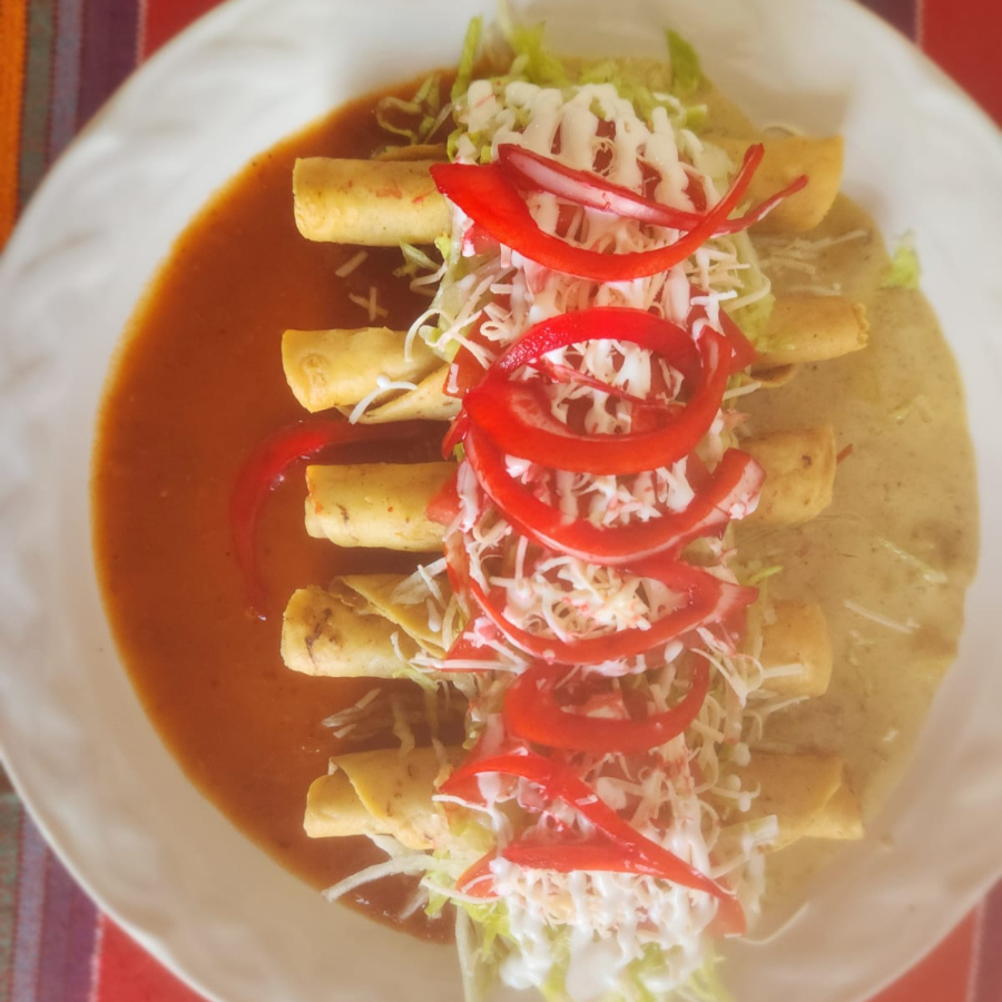 Tacos Dorados Bañados en Salsa