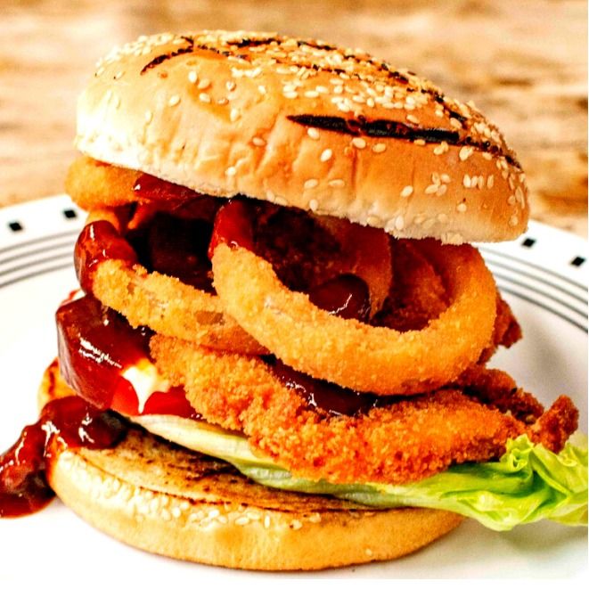 150 gr de pechuga de pollo crispy o carne de res sazonado con nuestros ingredientes especiales, acompañado de tomate, lechuga, aros de cebolla. Inlcuye 100 gr de papas a la francesa.