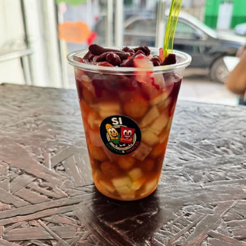 Vaso preparado con pepino, cacahuates, cueritos, dulces de tamarindo, clamato (bebida que se elabora a base de una mezcla de jugo de tomate y caldo de almejas), limón, chamoy y chile en polvo. Contiene mariscos y nueces.