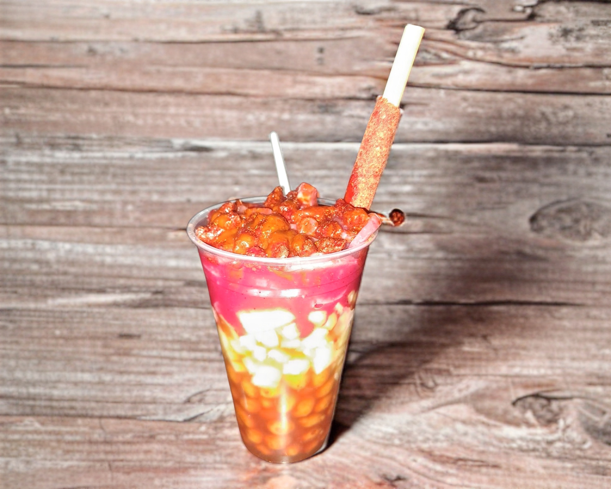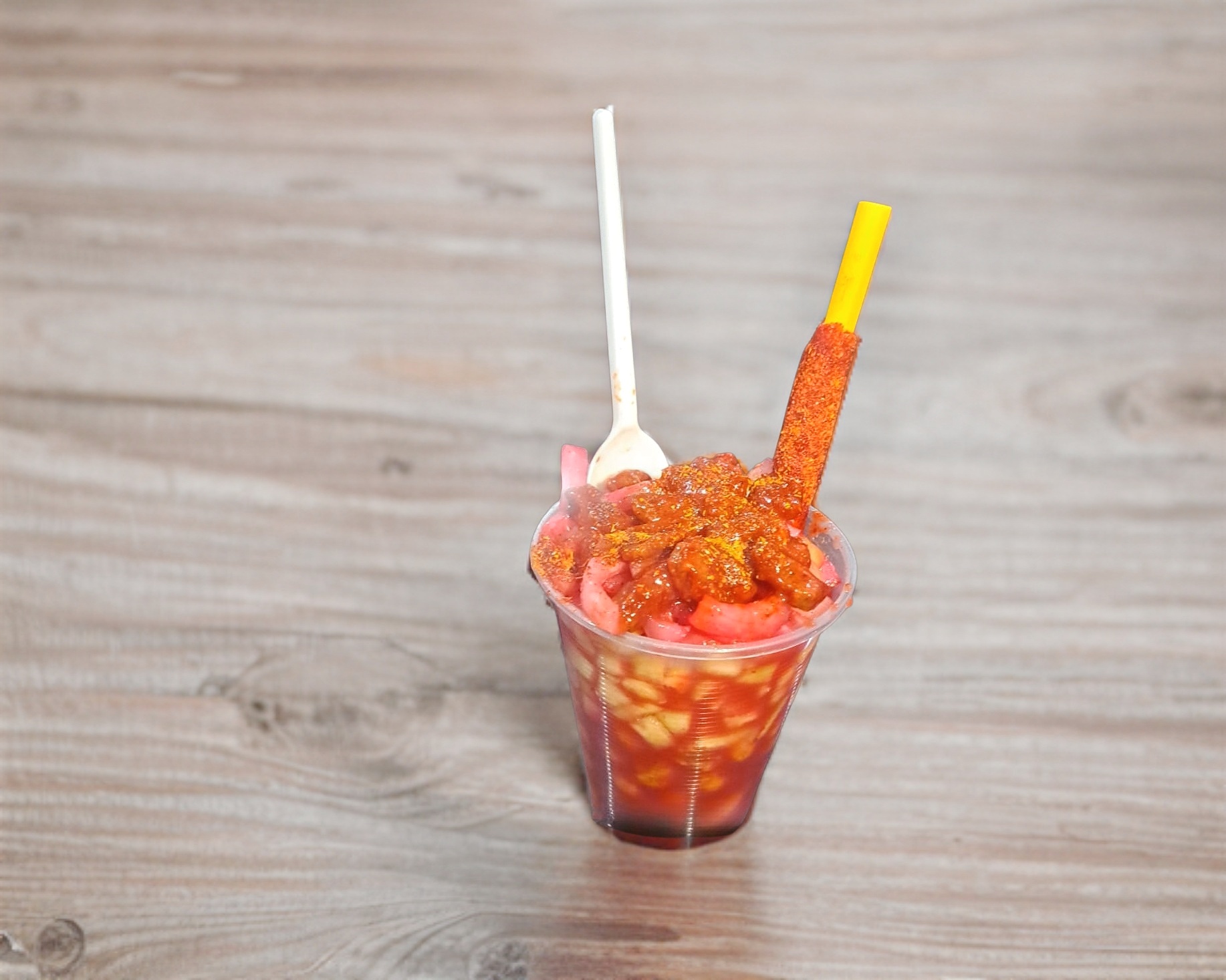 Mangonada con chamoy, chilito en polvo y limón.