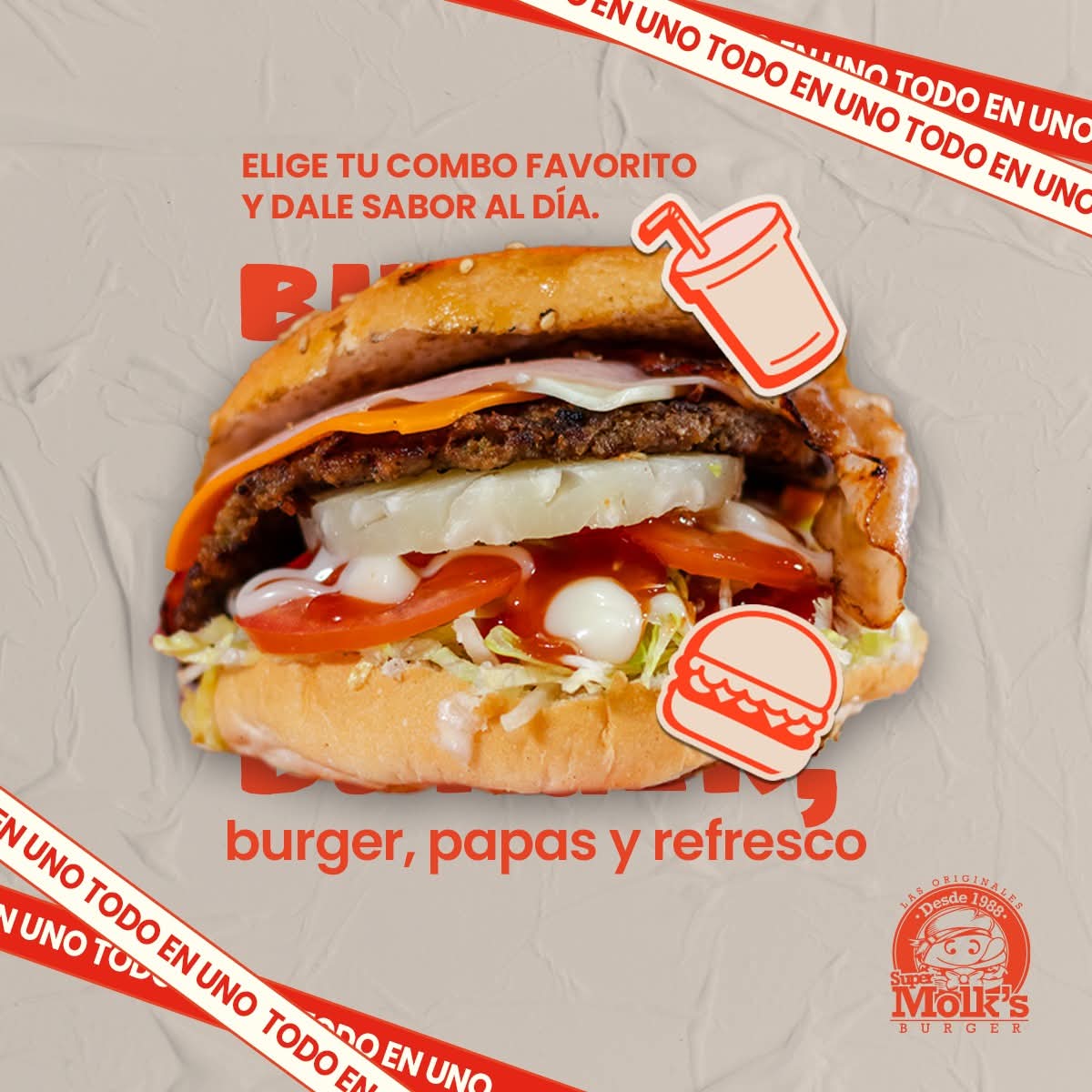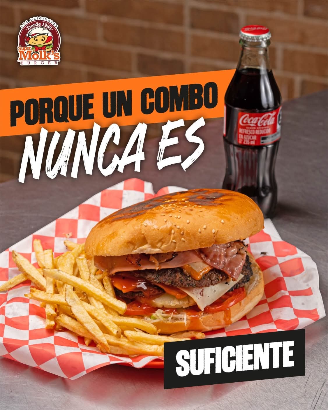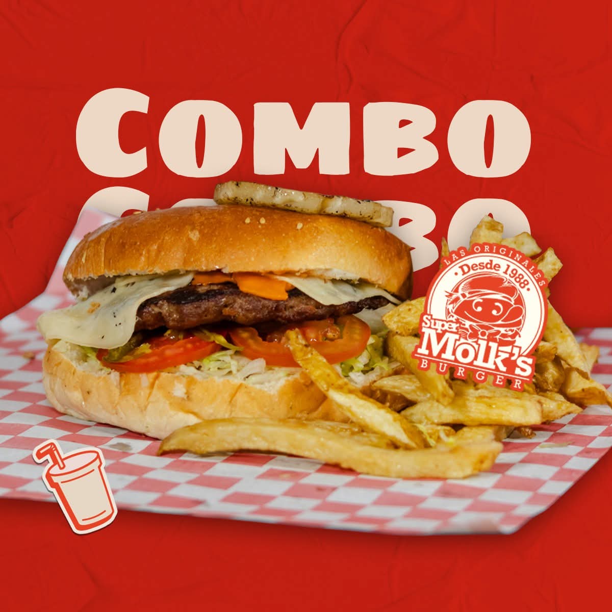 Hamburguesa Molk's Doble*1 + Porción de Francesitas*1 + Refresco 235ml*1