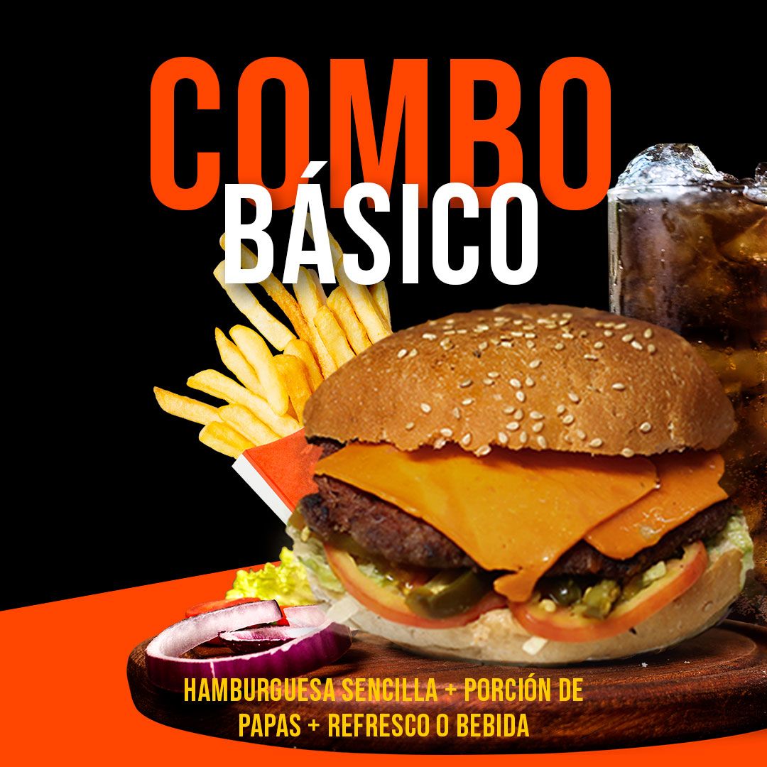 Hamburguesa sencilla con queso amarillo, mostaza, mayonesa, catsup, lechuga, tomate, cebolla y jalapeño.