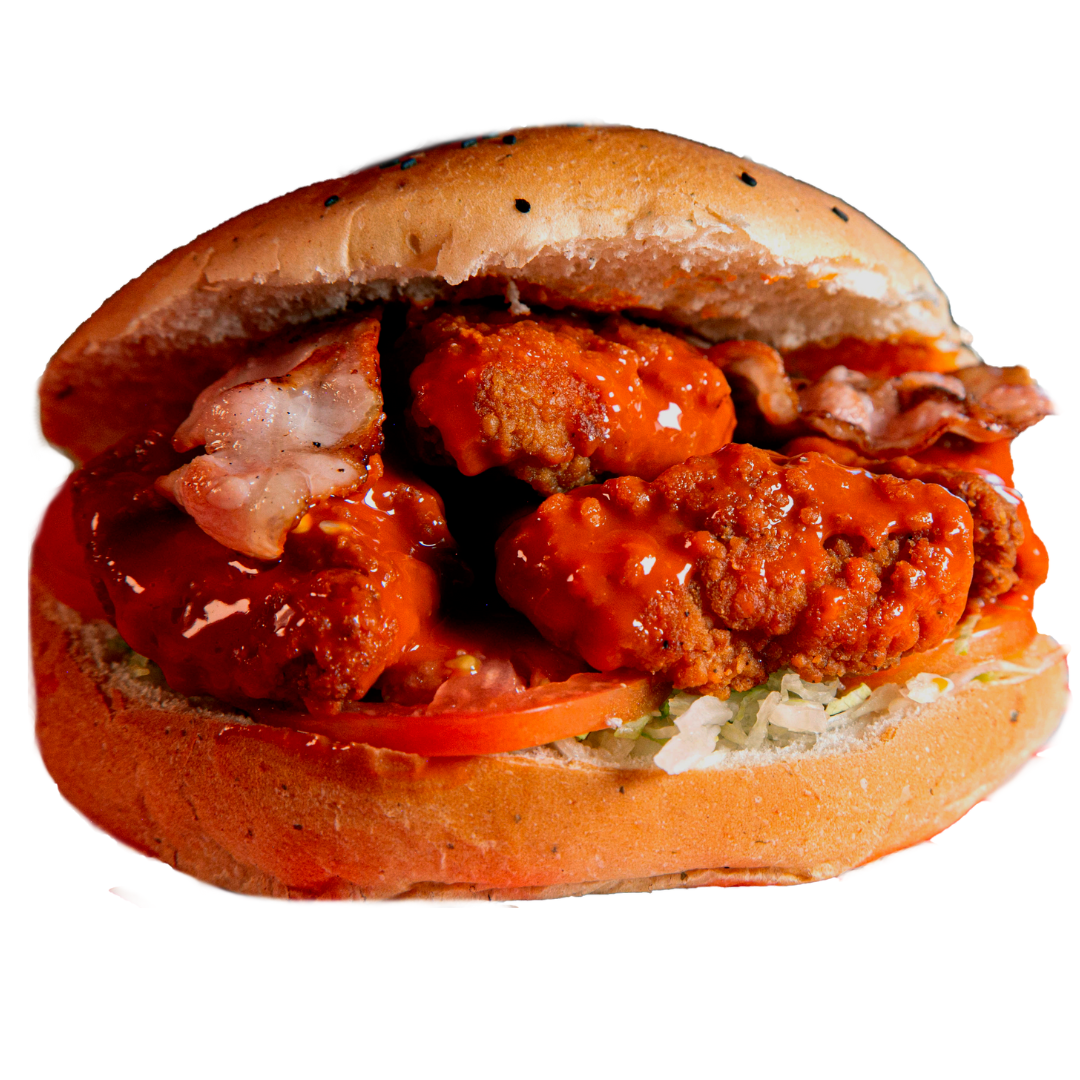Pan integral, carne de sirloin, queso blanco, amarillo, piña, tocino, aderezo ranch o chipotle, mostaza, mayonesa, catsup, lechuga, tomate, cebolla y jalapeño.