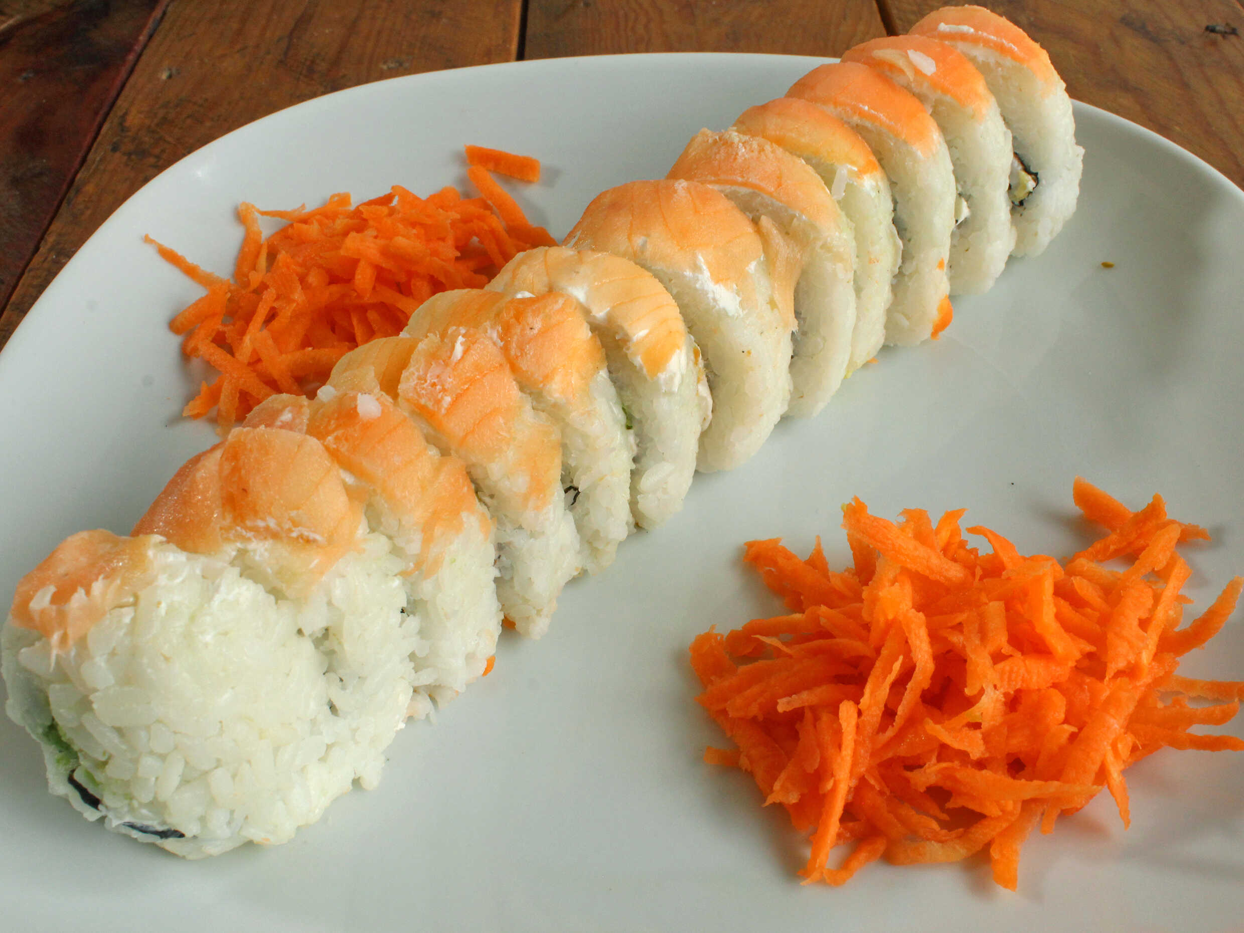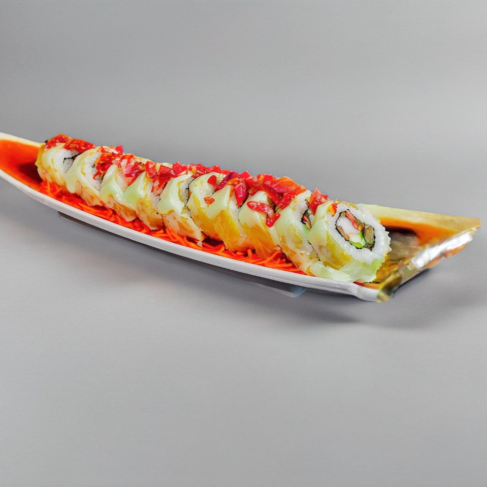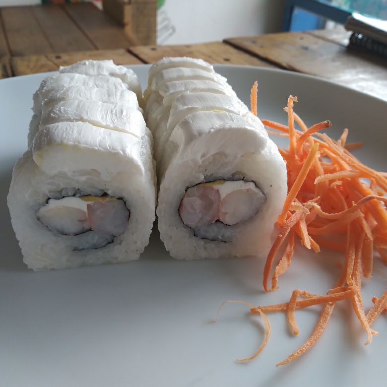 10 a 12 rebanadas con camarón, philadelphia y aguacate por dentro (por la compra de 1 caja puedes llevarte 2)