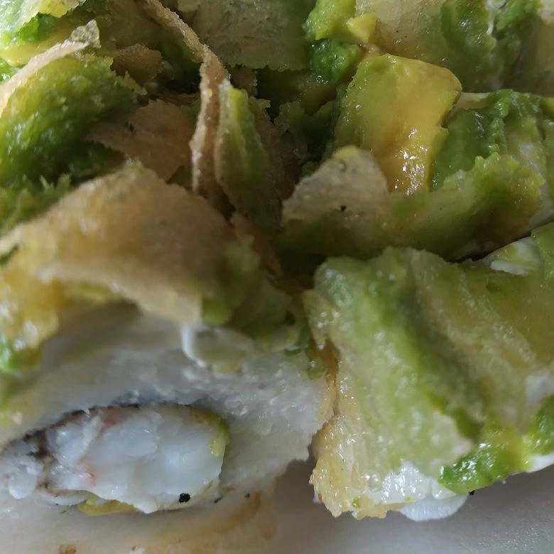 CAMARON EMPANIZADO, TAMPICO, AGUACATE Y QUESO PHILADELPHIA ENCIMA