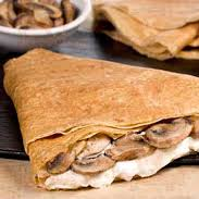 Base de crepa elaborada artesanalmente sobre crepera de 40cm de diámetro y doblada en forma triangular, con un toque de mayonesa y relleno champiñones salteados y queso gratinado tipo Chihuahua.