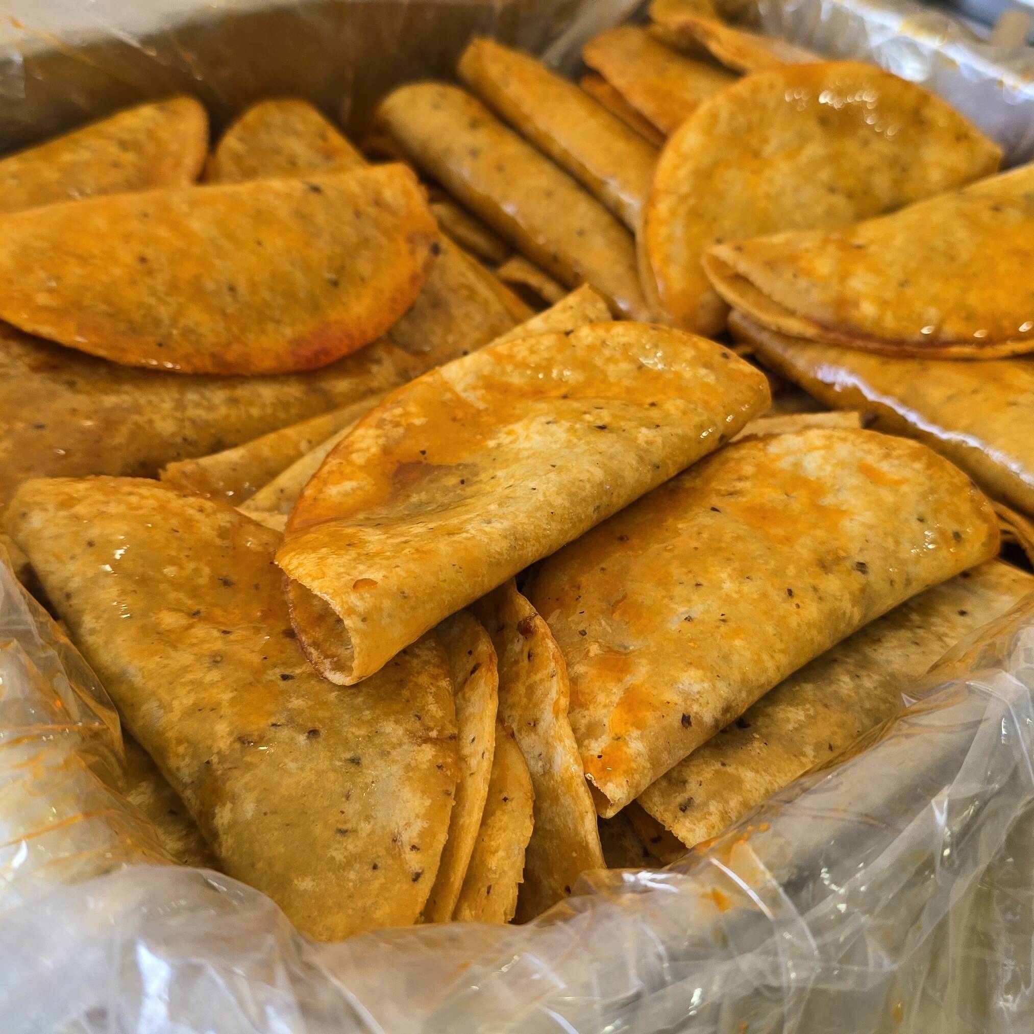 20 Tacos surtidos: 5 de deshebrada, 5 de chicharrón, 5 de papa y 5 de frijol, acompañados de verdura y salsa la clásica (con tomate, cebolla y cilantro).