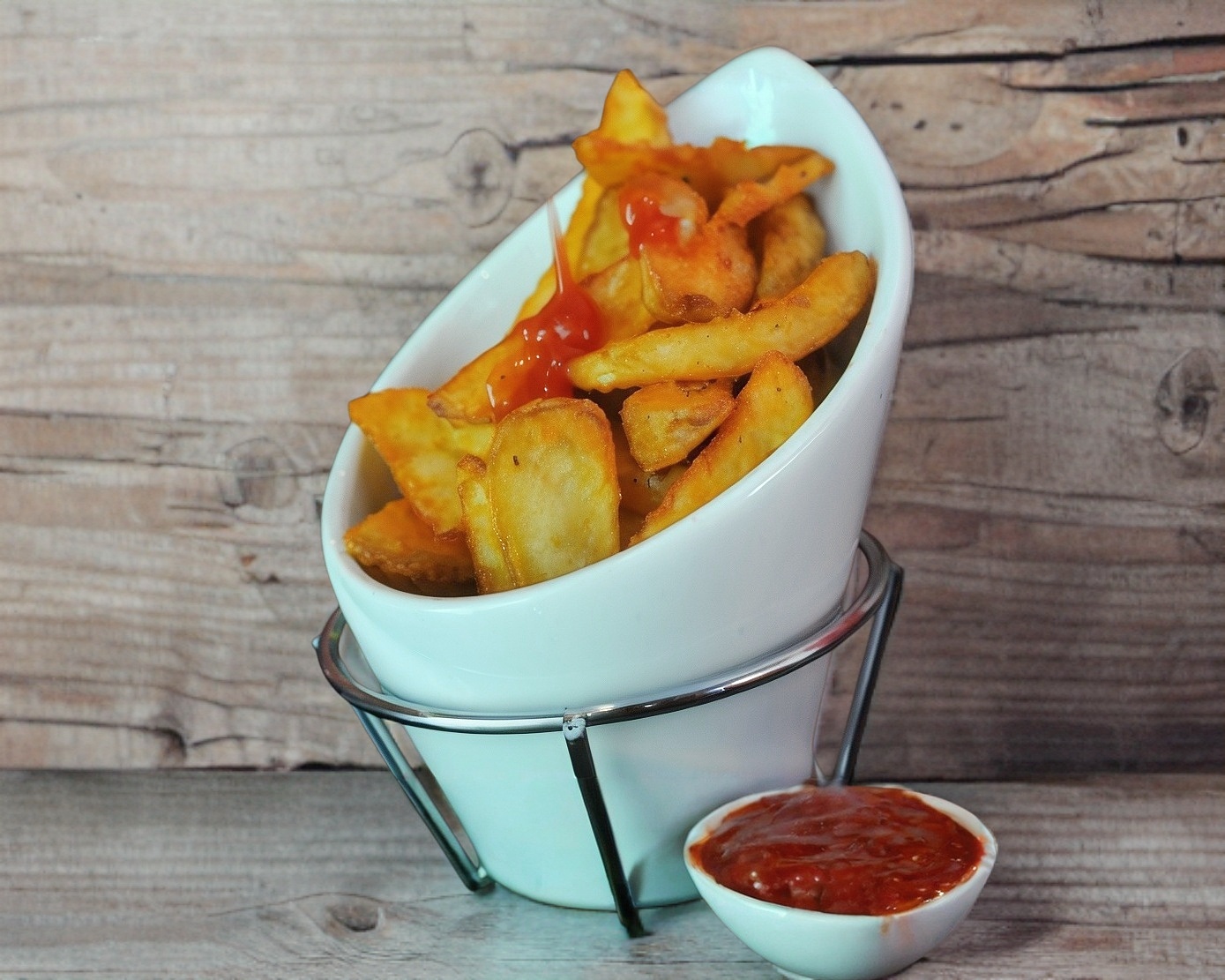 Ricas papas en gajo sazonadas, acompañadas de un rico aderezo