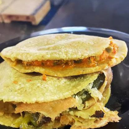 Gorda de maíz, con verdura y salsa, tamaño= 15cm de diámetro.