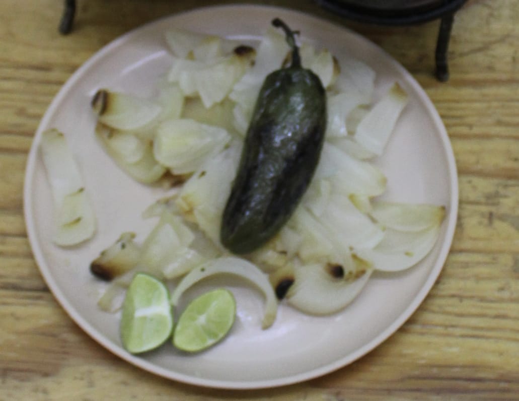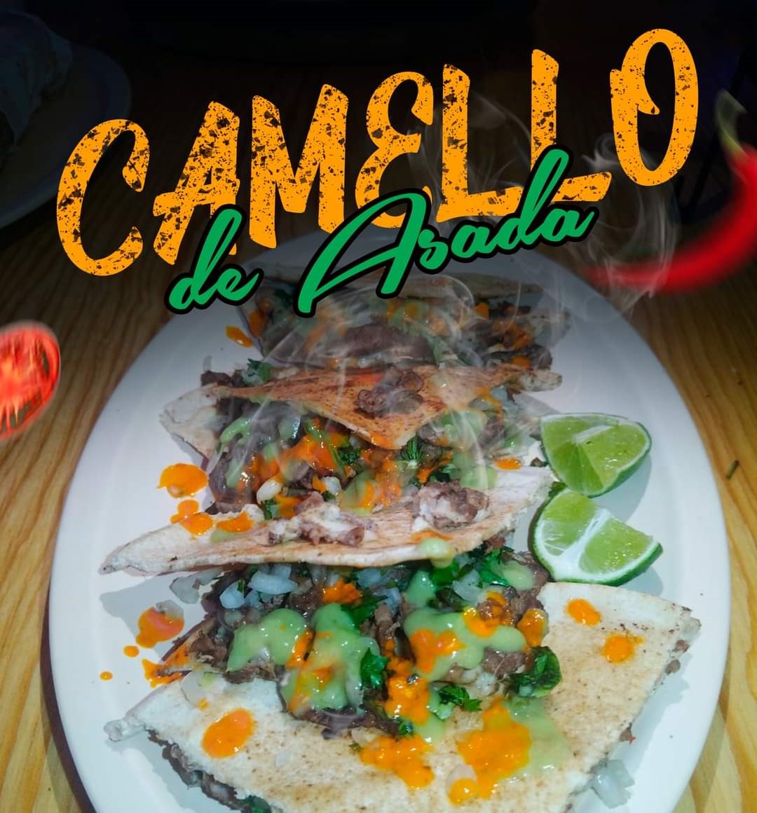 Con Carne de res, Champiñones, Queso, Acompañado de Tortillas de Maíz, Cebolla, Cilantro y Salsas.