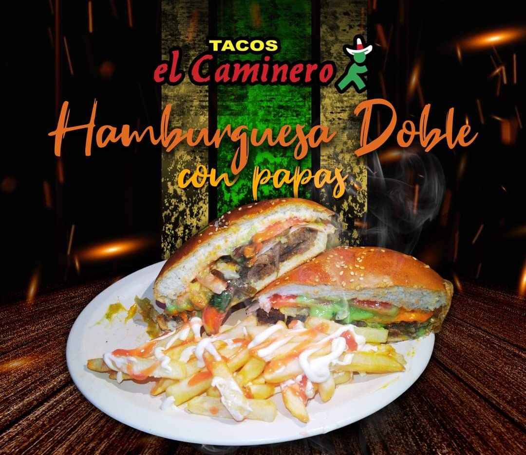Deliciosa Hamburguesa con Piña, Jamón, Queso Amarillo, Lechuga, Tomate, Chile en Rajas, Cátsup y Mayonesa.