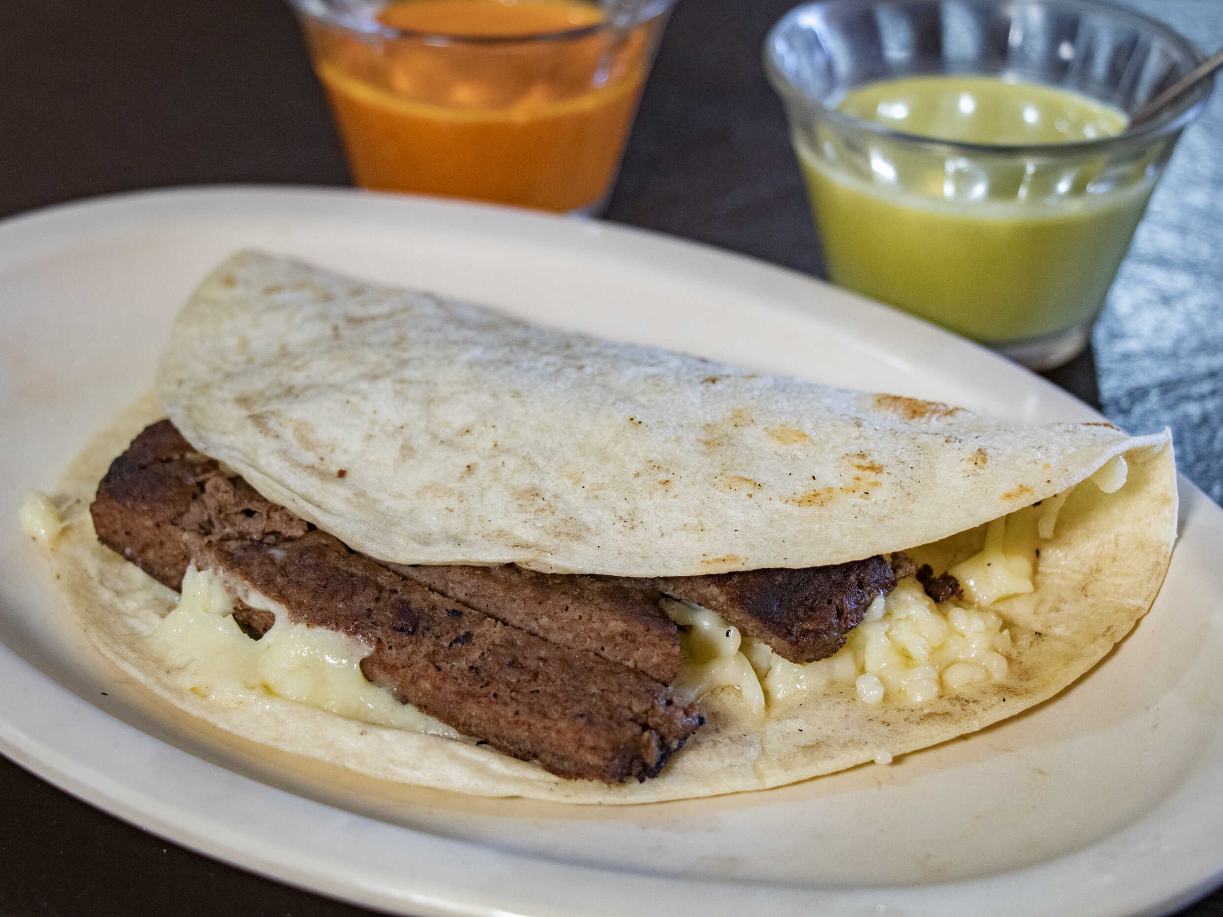 Arrachera, tocino y queso.
