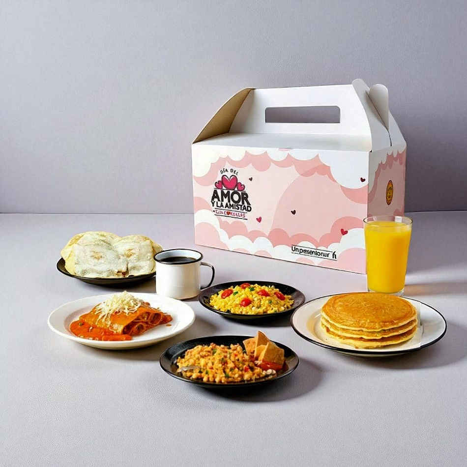 Hot Cakes + 3 Gorditas + Café de Olla + Jugo de Naranja (Se envía en Cajita de Regalo)