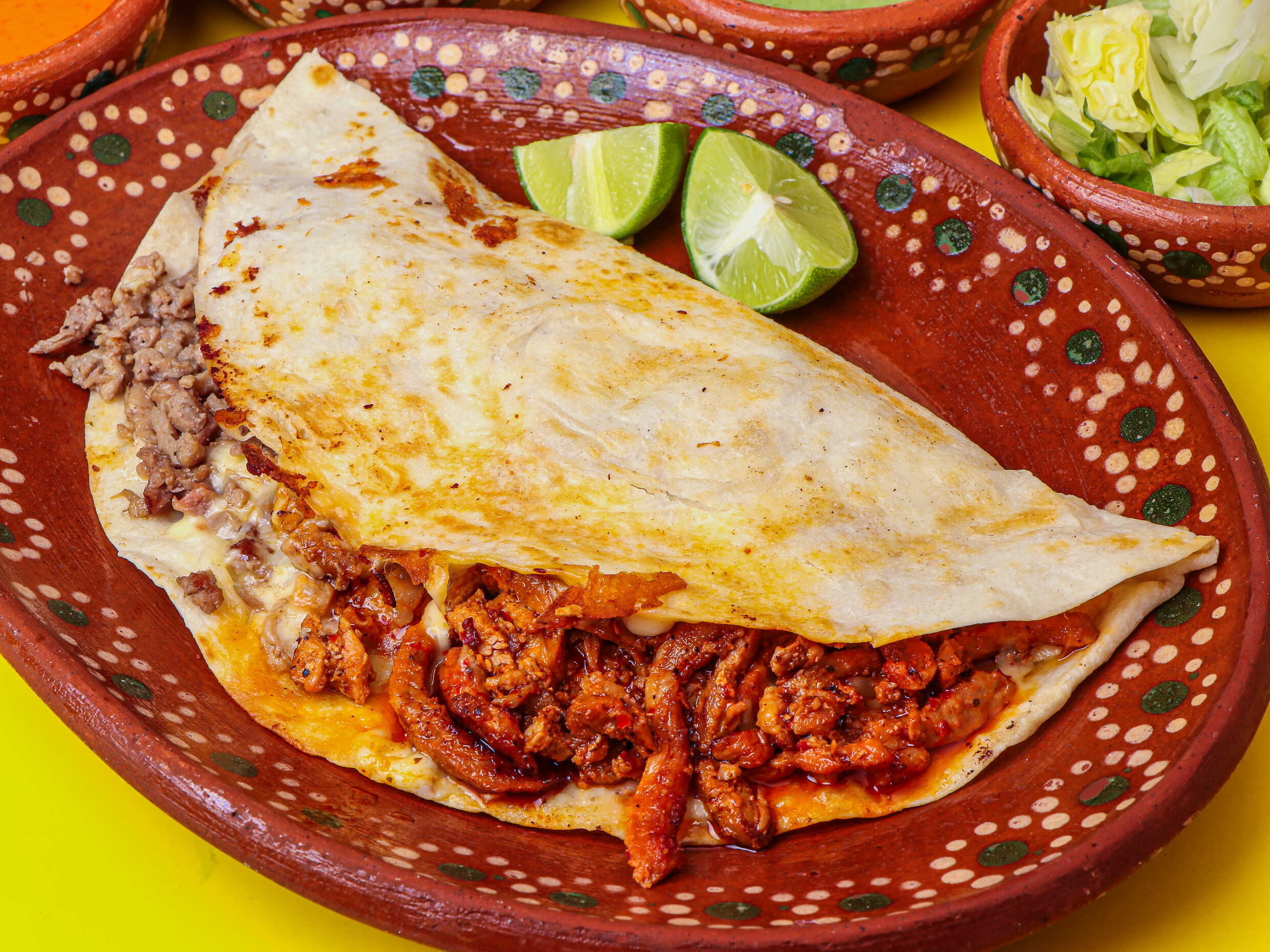 Quesadilla de maíz con carne.